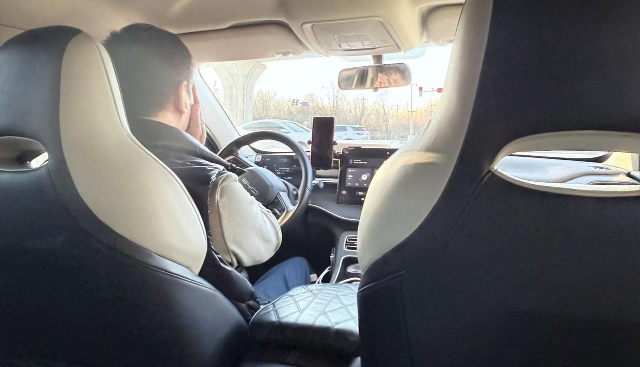 打了辆比亚迪秦PLUS插电混动(DM-i),纯电续航55公里,油电混动一箱油能跑1500多公里。司机说,这车2024年开始租的,一个月租金6000块,租满3年后车归自己。司机说,这车是孩子来北京跑滴滴租的,跑了几个月后嫌累回老家了,只好自己来北京接着开。现在开了一年多,觉得不开满3年有点亏。司机觉得这车挺好开的,就是胎噪声太大,嗡嗡的。司机说,他一年跑十六七万公里,每天跑11个小时以上。一天100块的油钱。一天能到手700多块钱。司机说,一个人开不赚钱,要是两个人两班倒人歇车不歇的话就能多赚些。司机此前给别人开车,开了30多年,现在一坐上车脑瓜子都疼,希望早点开满3年回老家长春。