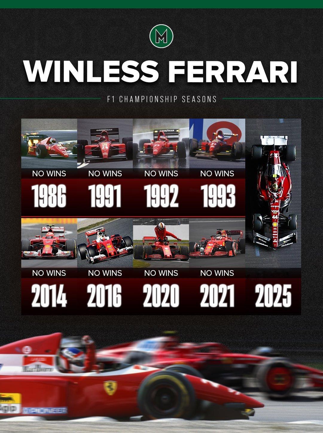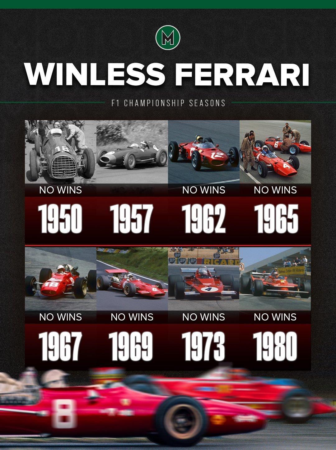 法拉利队史有17次单赛季0胜,其中5次在混动时代f1F1