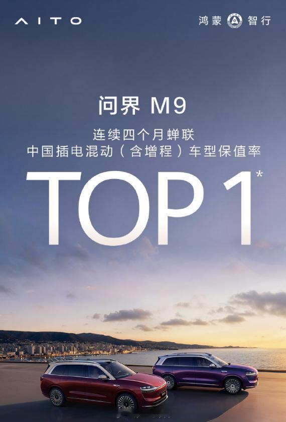 问界M9连续四个月蝉联中国插电混动(含增程)车型保值率TOP1