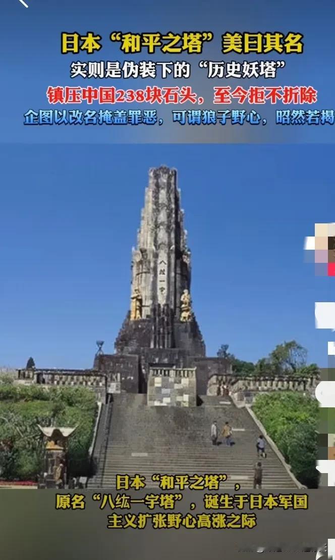 必须拆除!这座用中国血肉堆起的妖塔,是亚洲的耻辱 石头不会说话,但石头会记仇。 在日本宫崎县耸立着一座名为平和之塔的建筑。在游人眼里,它似乎是祈祷和平的圣地。但如果你翻开它的底座,仔细看每一块石头的纹理,你会感到一股从脚底板直冲天灵盖的寒意。 别被那镶金的平和二字蒙了眼!这座塔根本不是什么和平象征,分明是日军侵华暴行的耻辱纪念碑,是用中国文物古迹的血肉堆起来的罪恶载体。那些看似规整的青灰色石材,半数以上都是当年日军铁蹄踏遍中国时,从长城残垣、千年古寺、古城墙垣上强行拆凿、掠夺而来的赃物河北正定某古寺的柱础石被凿断运走,山西平遥古城墙的城砖被撬下来装车,甚至连部分抗战遗址的残破石块,都被他们当作战利品运回日本,砌进了这座伪善的塔中。每一道石缝里,都藏着中国百姓的哭声,藏着文物被毁的惋惜,藏着侵略者的嚣张跋扈。 打着和平的旗号,干着美化侵略、亵渎历史的勾当,这才是最让人不齿的地方。宫崎县当地某些势力一直刻意隐瞒石材的掠夺来源,还对外宣称这些石头是中日友好的见证,骗得不少不明真相的游客专程前往祈福。可他们忘了,和平从来不是靠掠夺来的文物包装出来的,真正的和平,是正视侵略暴行,是归还掠夺文物,是向受害国人民真诚道歉,而不是把罪恶的证据当成炫耀的资本,把伤痛的记忆当成美化的素材。 更讽刺的是,这座平和之塔还被部分日本媒体吹捧为亚洲文化地标,甚至纳入当地旅游名片大力推广。一个靠掠夺他国文物建成、承载着侵略记忆的建筑,凭什么代表亚洲的形象?这是对中国人民的情感伤害,更是对整个亚洲反战历史的亵渎,是亚洲圈子里实打实的耻辱。那些前往参观的游客,每一次驻足打卡,都可能在无意间成为历史弯曲者的帮凶,让那些被掠夺的石头,再一次承受邪恶的压制。 石头确实不会说话,但历史会发声,民族记忆会传承。日军当年掠夺文物、践踏和平的暴行,早已刻进了每一个中国人的骨子里,也写进了世界反法西斯战争的史册里。这座平和之塔越是矗立在那里就越像一根刺,扎在受害国人民的心上,时刻提醒着我们:历史不容篡改,罪恶不容美化。 我们不是要掀起仇恨,但绝不允许有人打着和平的幌子颠倒黑白。这座用中国血肉堆起的妖塔,早该被正视其罪恶本质,要么彻底拆除,要么公开标注每块石材的掠夺来源,还原历史真相,给受害中国人民一个交代。毕竟真正的和平从不是伪装出来的,唯有正视历史、承认罪恶才能真正守住和平的底线,不要让那些带着伤痛的石头再次被埋没。