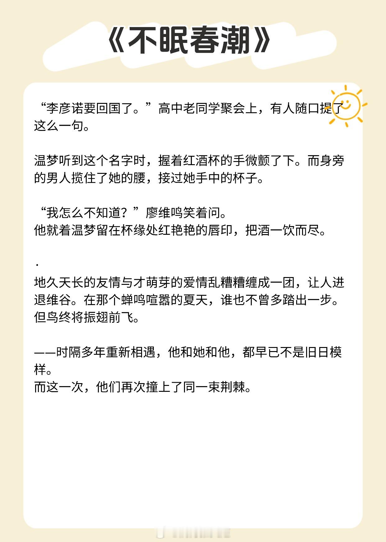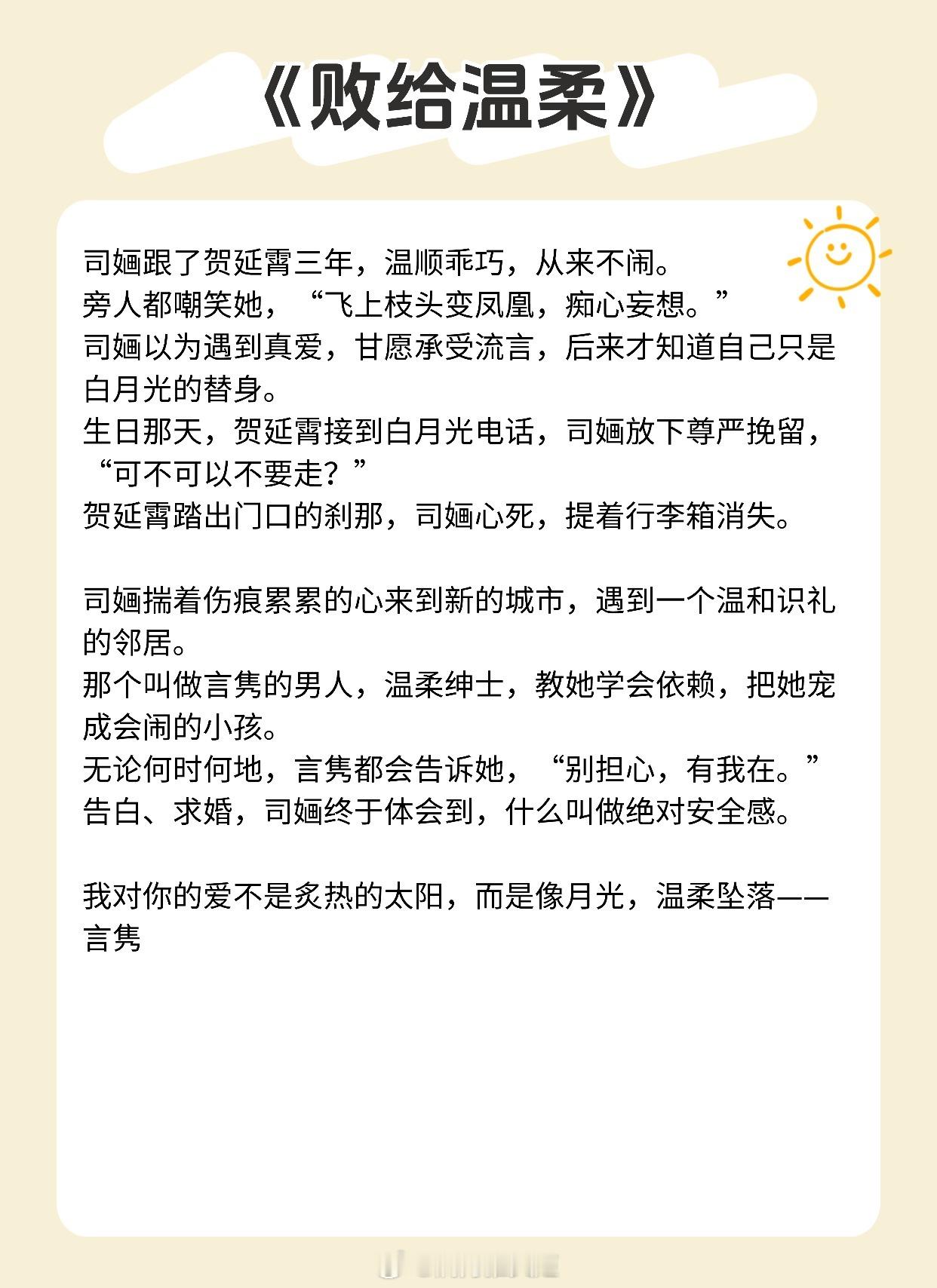 【清隽温柔型男主】我对你的爱不是炙热的太阳,而是像月光,温柔坠落《或许春天知道》作者:明开夜合《你若南风》作者:梦筱二《败给温柔》作者:江萝萝《错拍》作者:林不晚《今生才是第二次》作者:露西花《不眠春潮》作者:小涵仙《鸟与荆棘》作者:一只小火腿《玫瑰城堡》作者:一支枯芙《认真的胡闹》作者:蟹总推文言情小说推荐推文