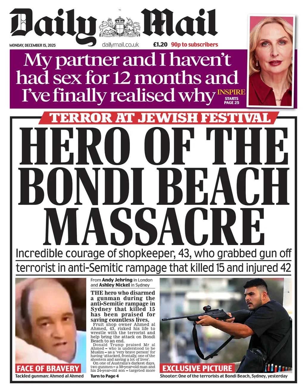 《每日邮报》写道,在悉尼一次反犹太袭击中,一名男子解除了一名手持武器的歹徒,拯救了无数生命。 文章配有艾哈迈德·艾哈迈德(Ahmed al Ahmed)的照片,唐纳德·特朗普称他为“非常勇敢的人”。