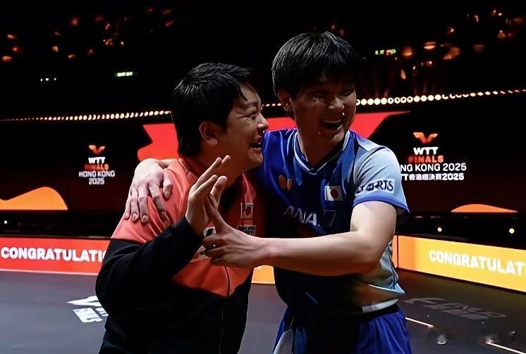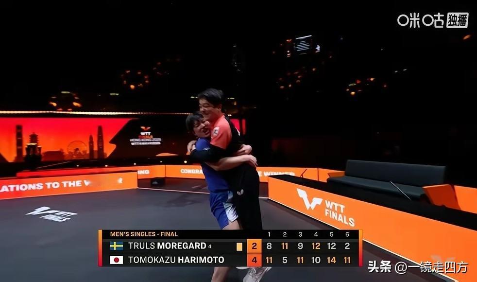 WTT香港总决赛男单决赛,张本智和4-2击败莫雷加德,在五次参加参加总决赛、三次进决赛分别输给樊振东和王楚钦屈居亚军后,这次终于趁着樊振东未参加、王楚钦因伤退赛的大好时机首次拿到冠军,四场比赛连续赢下西蒙·高茨、小勒布伦、林诗栋和莫雷加德,这个冠军也是含金量十足。 本场比赛,前四局两人战成2平,关键的第五局,莫雷加德以10-7率先拿到局点,但被张本智和追至10平,并最终以14-12逆转拿下,成为比赛分水岭。第六局,张本智和延续了上一局末段的气势,开局就5-0领先,之后不断扩大领先优势保持,最终以11-2轻松拿下,4-2取胜夺冠。获胜后的他跪地庆祝,又是模仿樊振东的庆祝手势,又抱起教练岸川圣也,还用手势为教练的6岁的儿子庆生。至此,中日韩分享了本次总决赛的三项冠军。