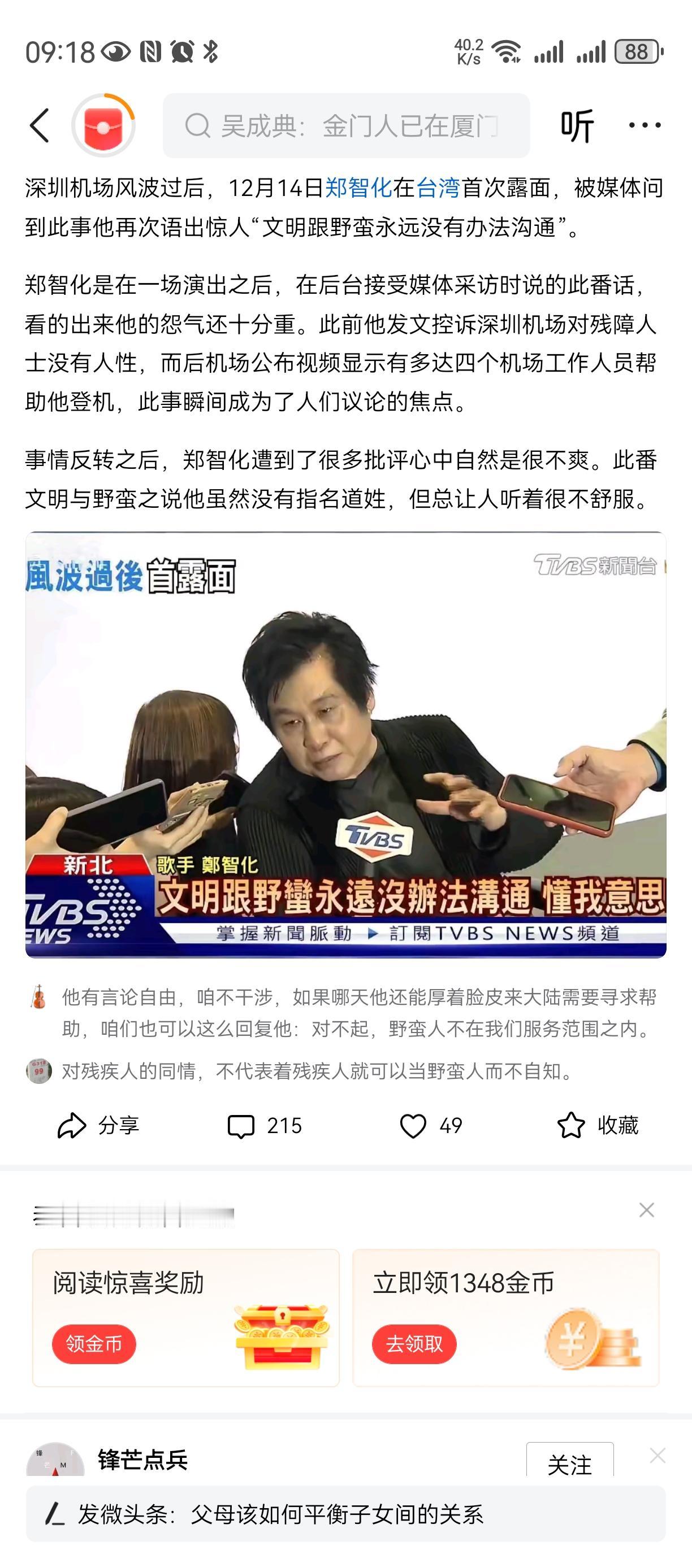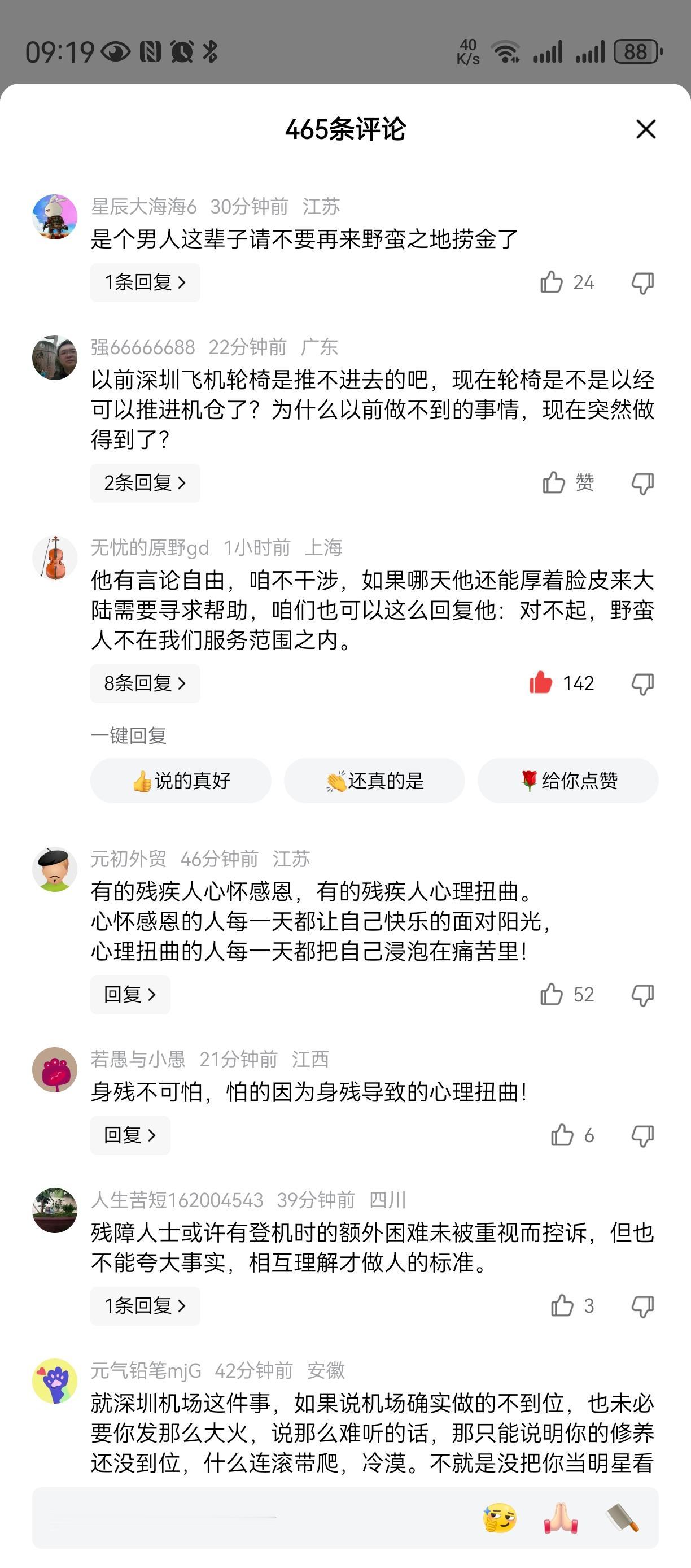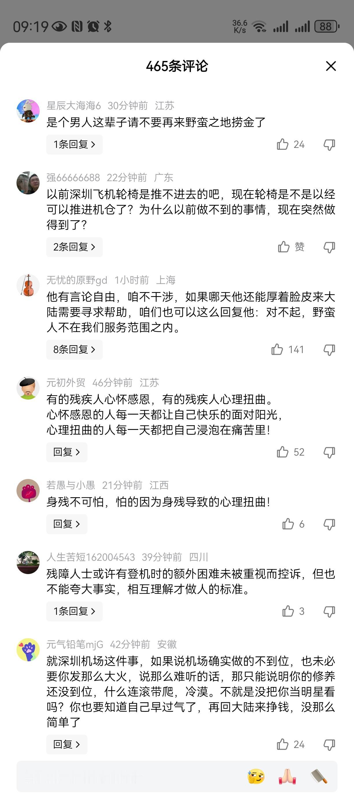 不在听《》水手》[发怒] 为啥? 这个歌手对别人要求太高, 把自己置于“”文明”高地, 其实行的是肮脏的龌鹾做法! 他尊敬过“”野蛮”的帮他抬的机场工作人员了没???