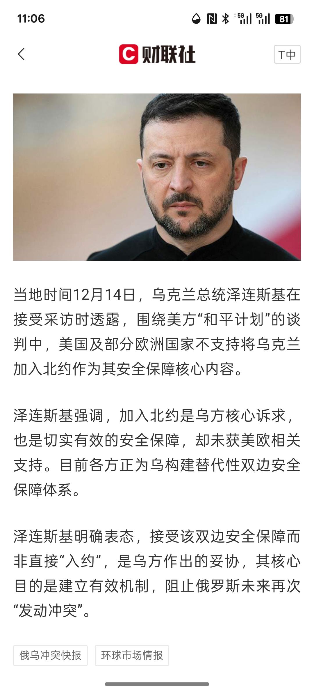 乌克兰放弃加入北约,泽连斯基必须妥协,但是这已经迟到了。对于乌克兰来说,这四年乌克兰为了加入北约付出了太多的代价!一个国家被打得千疮百孔,最终却未能实现当初的目标!俄乌战争本质上就是俄罗斯与西方世界的一次重要的对抗!乌克兰却要把自己当成了主角,却不曾想到自己其实只是美国与西方国家对抗俄罗斯的一个筹码!就是一枚棋子!下棋的人是美国与欧洲对俄罗斯的一盘棋!