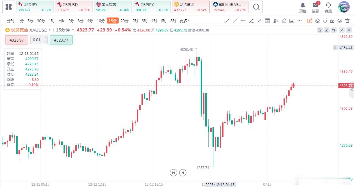 黄金上周五黄金在4352.76美元一线布局空单!4261美元一带做多布局多单4320早盘止盈!精准不精准大家自己看!黄金最高4353.49!最低回踩就是4257.2美元一线!目前黄金如期大涨4326.82美元一线再次大胜!上周五黄金走了一个先涨后跌,大起大落大震荡的行情走势,走势完全在分析把握当中!上周五黄金开盘在4279.7美元一线,早上黄金小幅回踩触及4264美元一线后企稳反弹!黄金亚欧盘直接开启大涨走势,美盘黄金进一步大涨最高触及到了4353.6美元一线,随后受阻大幅回落!尾盘黄金最低回落触及到了4257.2美元一线!精准不精准大家自己看!狙击手一样的操作再次展现!经典大家自己看!黄金尾盘最终收盘在4300.1美元一线,周线以一根上影线长于下影线的大阳线收线,而这样的形态收尾后,本周黄金周初主趋势依然看涨,需要警惕本周五日本加息黑天鹅!今天黄金回踩继续做多,下方支撑关注4290美元一线,上方关注4340/4155美元一线,具体操作点位以实时布局为准!