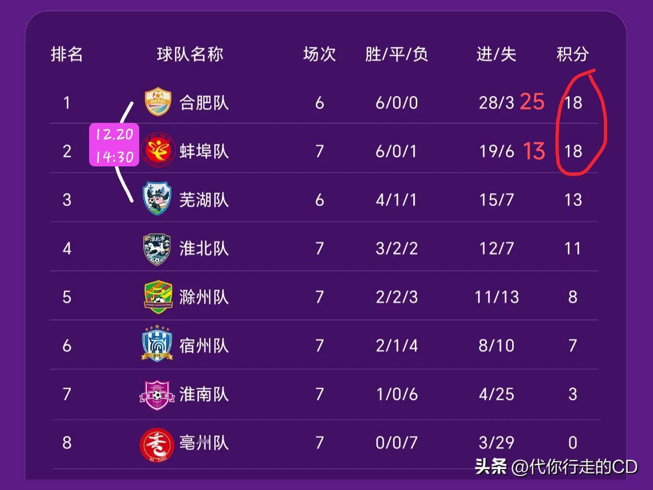 敌人的敌人就是朋友。 芜湖13:0合肥帮蚌埠争第1... 别痴人说梦!规则在这里! 规则1:积分相等队之间相互比赛积分多者,名次列前。 合肥目前少赛一场与蚌埠同分,因揭幕战上合肥3:2蚌埠而相互比赛积分占优,故无论合肥输芜湖多少个球都将压制蚌埠排第一。 规则2:单场比赛净胜球超过8个,比赛宣布结束。 即使不考虑相互战绩,芜湖胜合肥的净胜球最多也就8个,合肥的总净胜球降至17个、仍领先于蚌埠的13个,合肥照样排第一。 徽青赛甲组前四名已经排定座次,合肥、蚌埠、芜湖、淮北分列1-4名,12月20日进行的芜湖vs合肥的比赛出现任何结果都不影响最终排名。 两对事关争冠的排名争夺赛也已确定:合肥vs淮北、蚌埠vs芜湖,合肥、蚌埠先客后主,两场胜者角逐冠军。 安徽身边事 徽青赛 提到安徽,你首先想到的是什么 历史上安徽省会城市换过几次 谈谈对合肥的看法