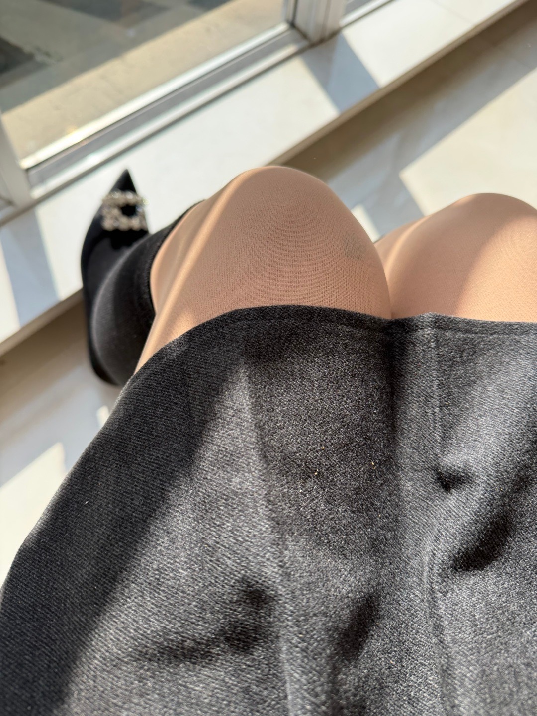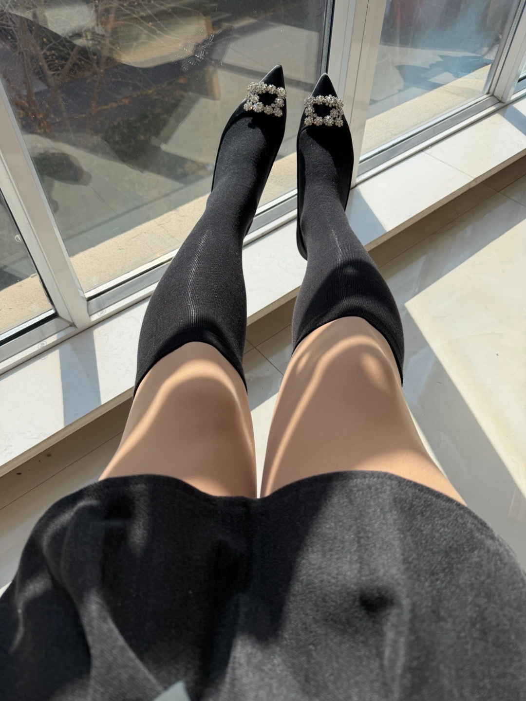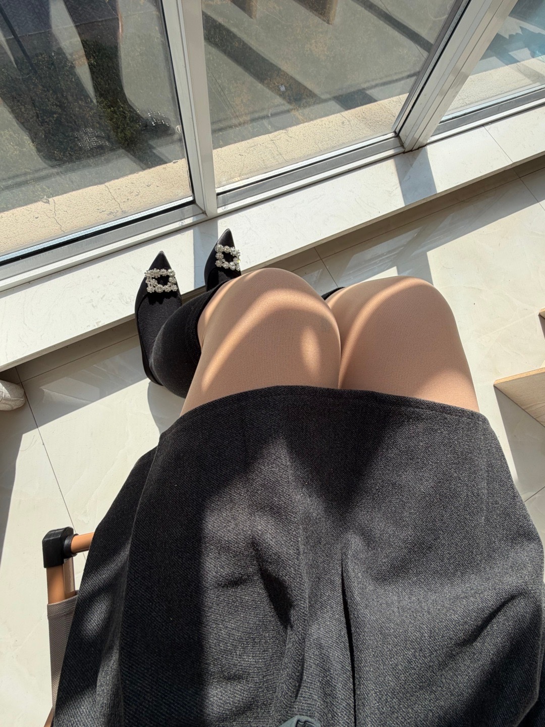 外面6度,但是晒太阳真的很暖和!小腿怕冷加了个棉的小腿袜!秋冬穿搭