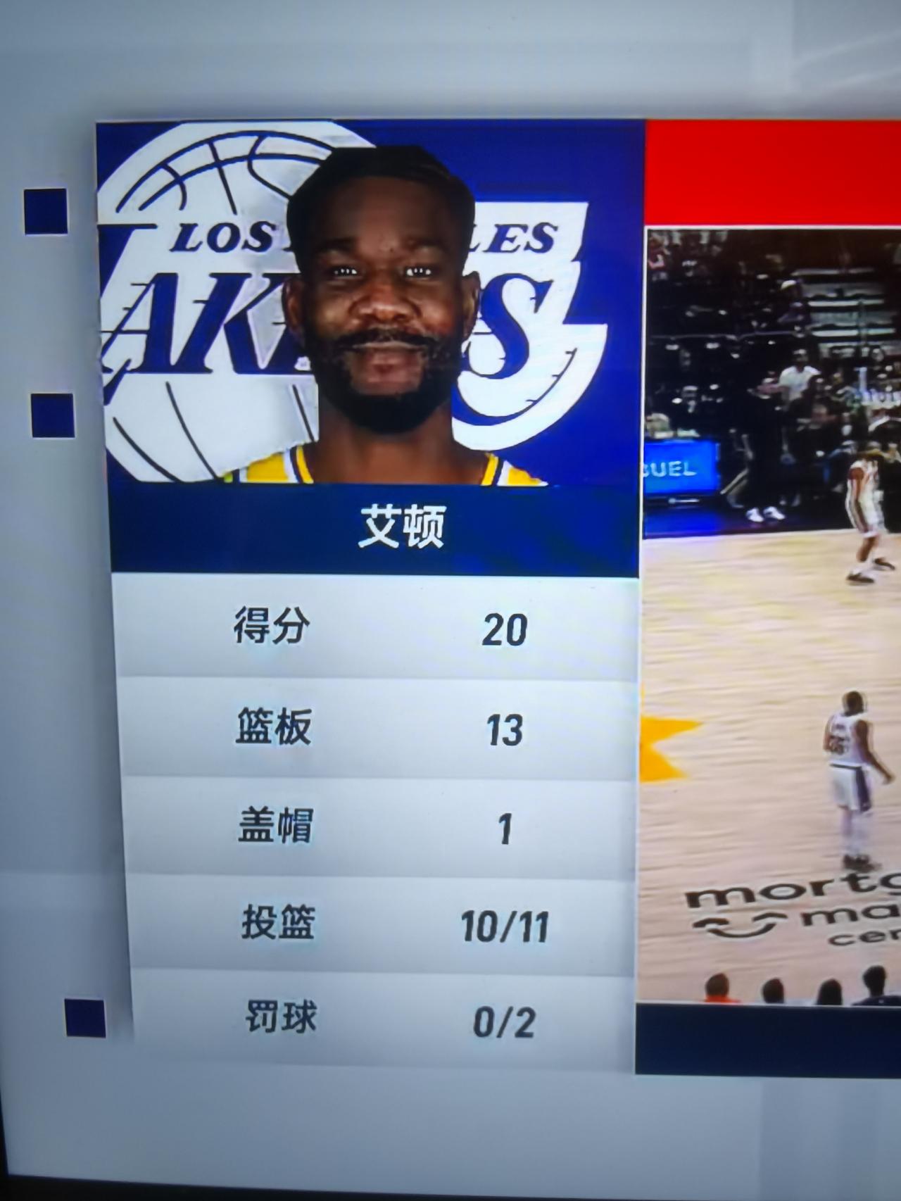 只看数据会坑死你 湖人116-114,战胜太阳。湖人中锋艾顿本场