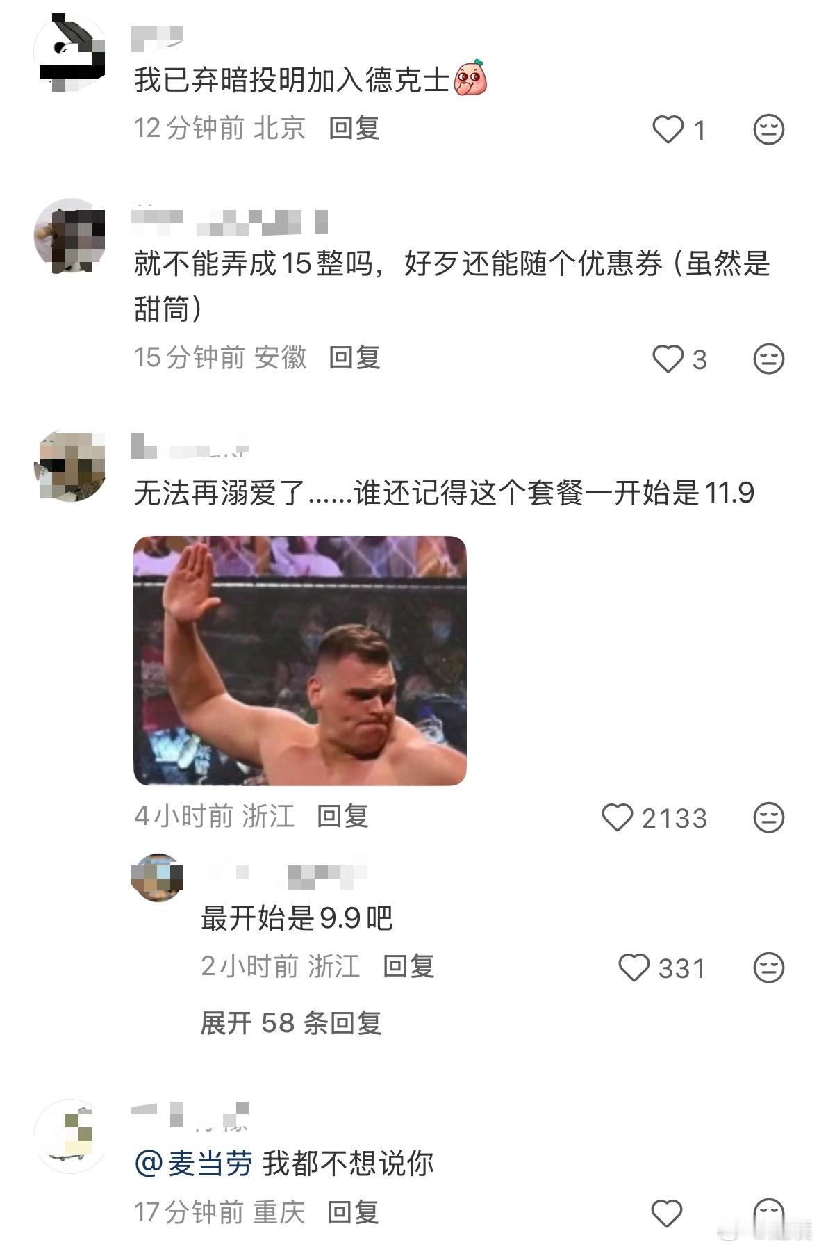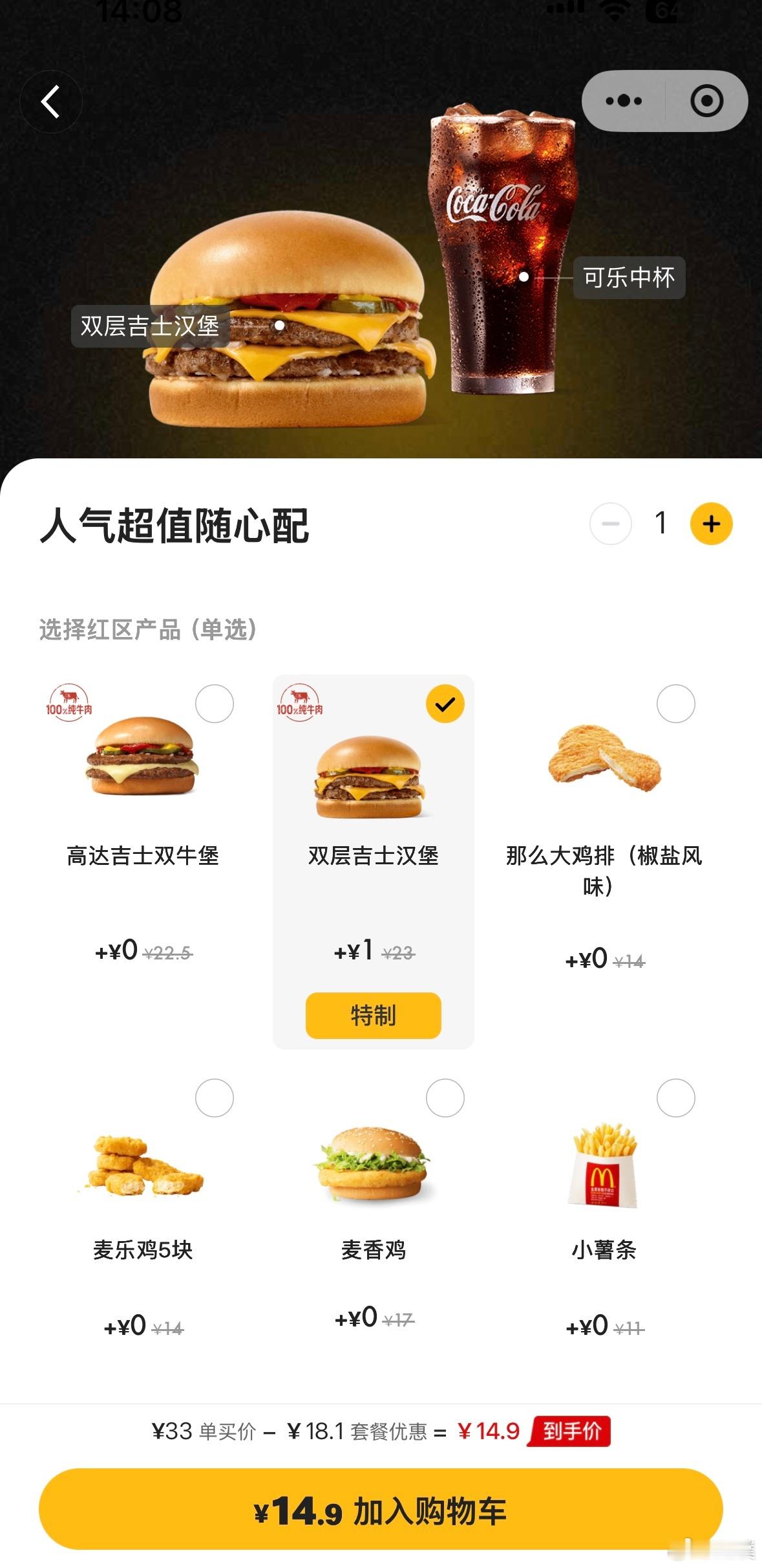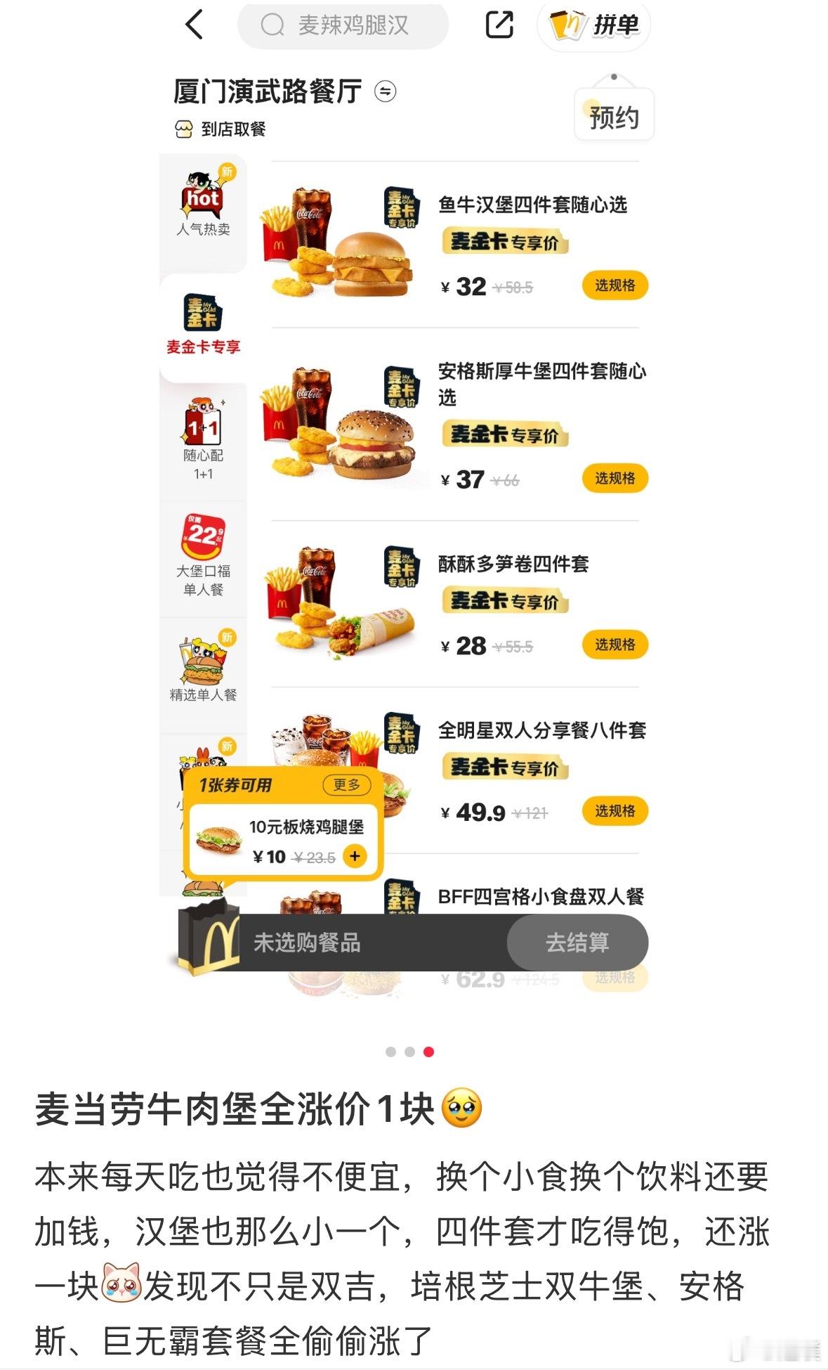 穷鬼套餐 涨价麦当劳随心配里的双吉套餐涨价1元,从原来的13.9涨价到14.9。随心配价格从最开始12块钱,到现在最高14.9,6年涨了3块钱,已经看到很多小伙伴打算退出麦门了 麦当劳涨价0.5到1元 麦当劳回应涨价