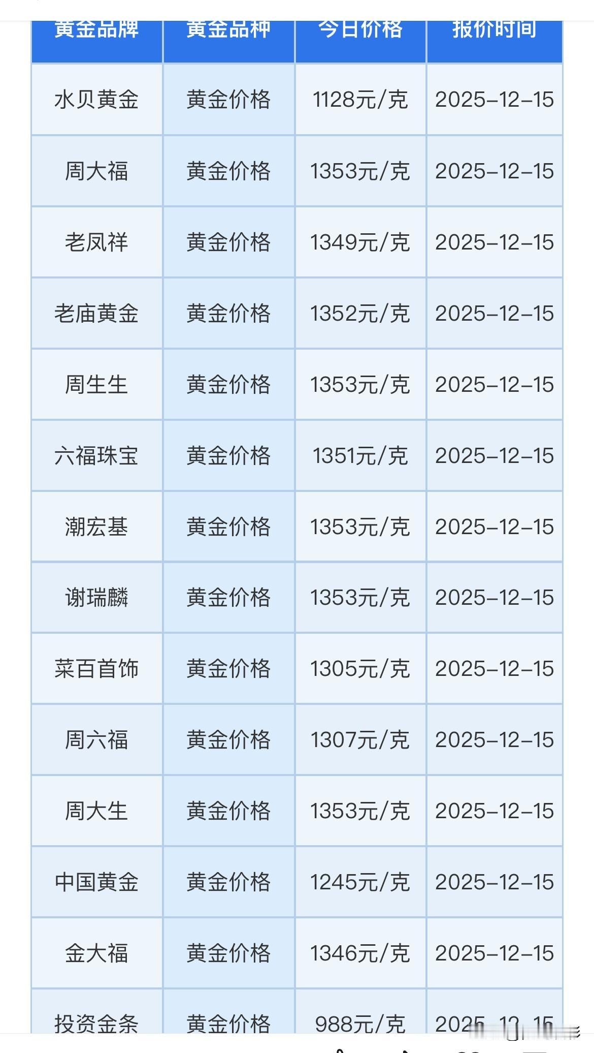 又涨疯了! 今天黄金首饰又涨了! 周大福黄金价格1353元/克, 老庙黄金黄金价格1352元/克, 六福珠宝黄金价格1351元/克, 老凤祥黄金价格1349元/克。 同比与昨天老庙黄金上涨了7元,周大福和六福珠宝各上涨了5元,老凤祥上涨了4元。 另外黄金首饰5不要: 1不要大力拉扯, 2不要和化学物质接触, 3游泳时不要戴金首饰, 4不要乱清洗, 5不要随意放置保存。 所有信息都只是提供参考价值! 购买黄金有风险,请大家理性购买!