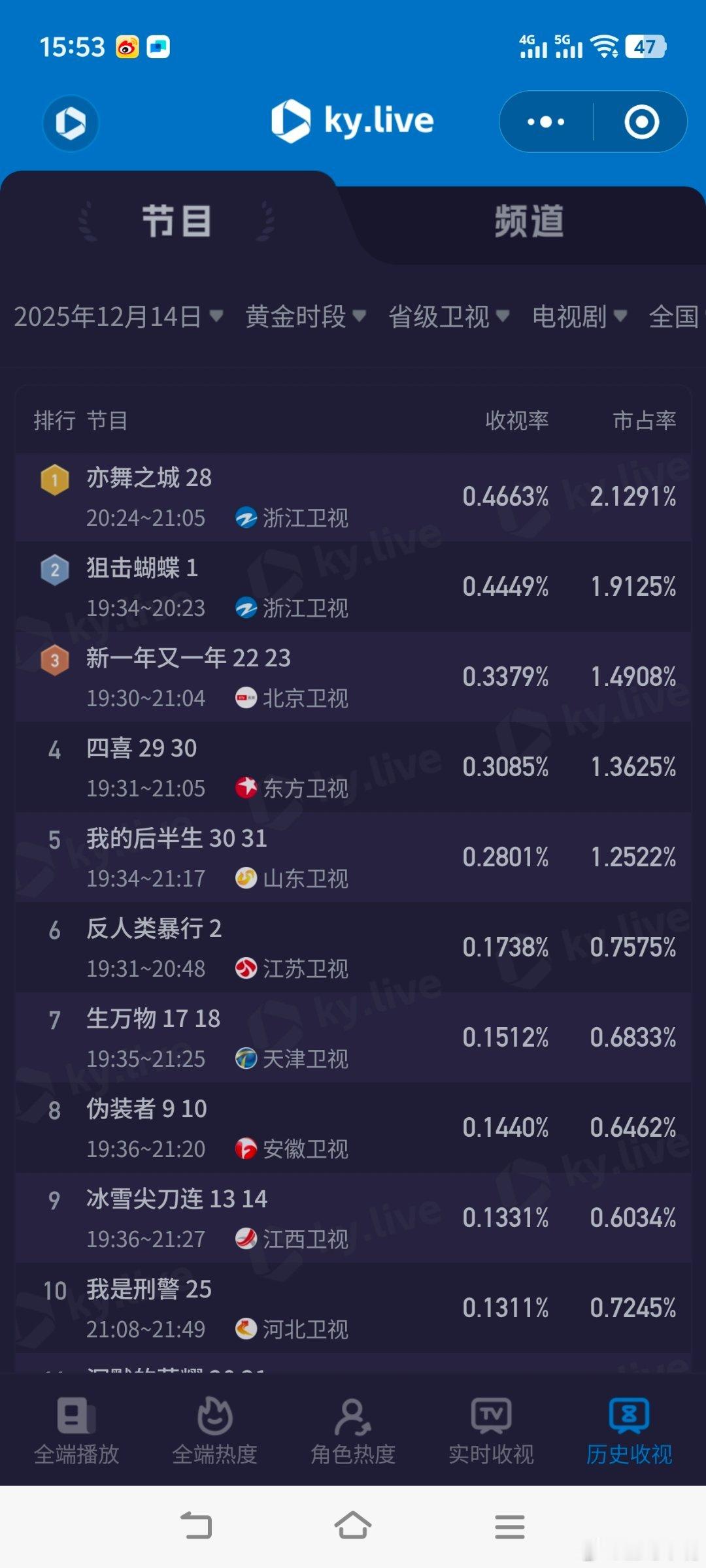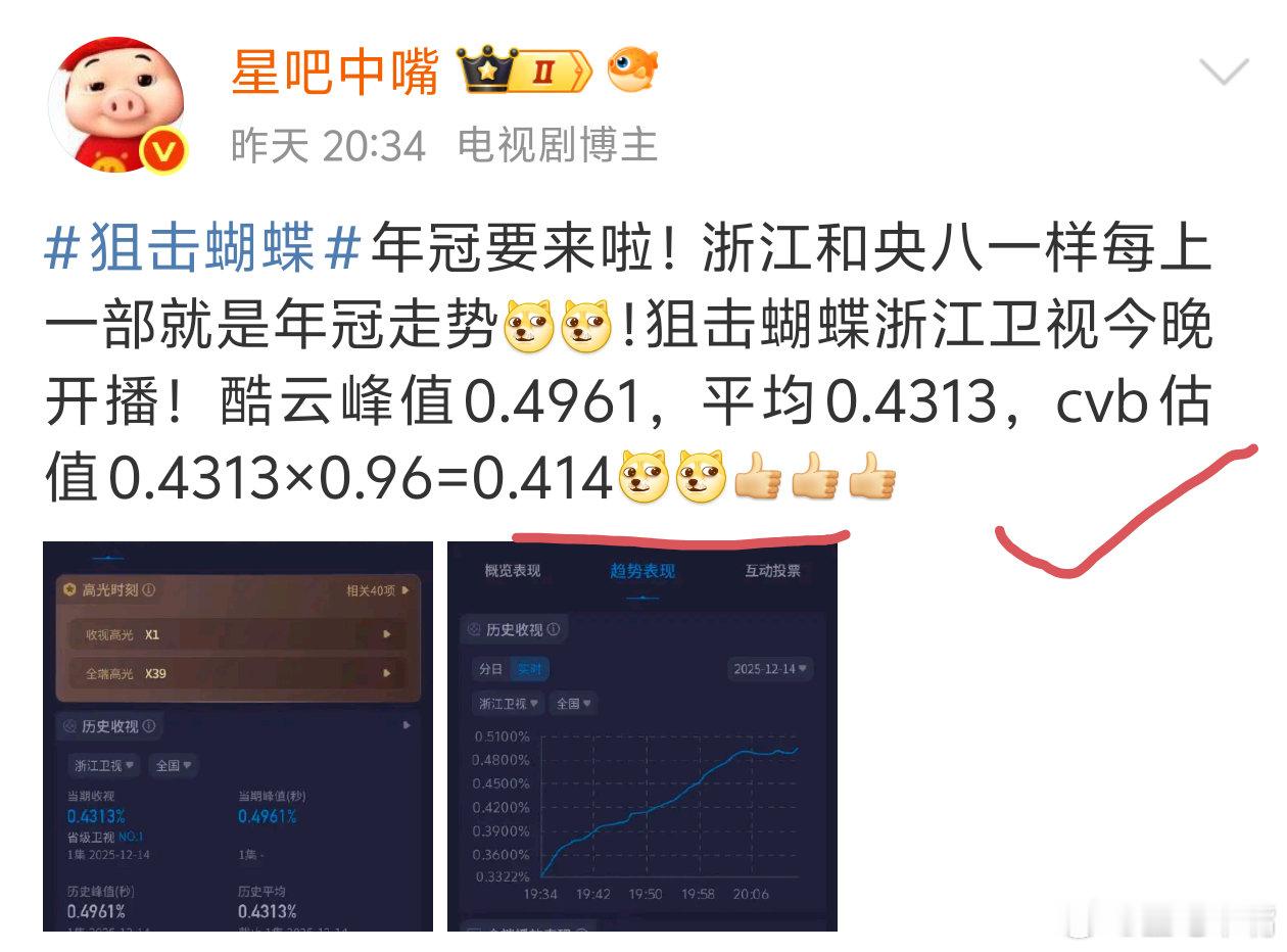 陈妍希是狙击蝴蝶原著粉12月14日cvb收视日报!《狙击蝴蝶》首播0.410!暂列浙江卫视年冠!