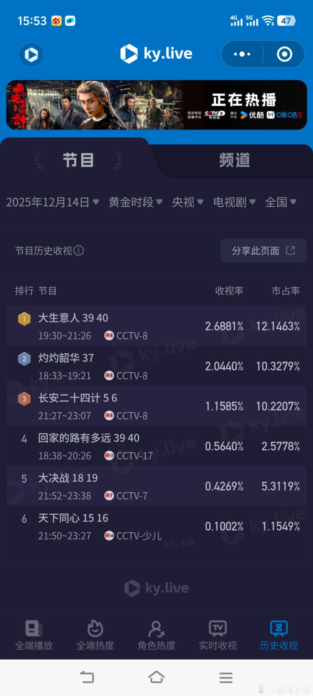 陈晓、孙千《大生意人》cvb集均收视2.288,暂列央八年度第6️⃣位!央八古装