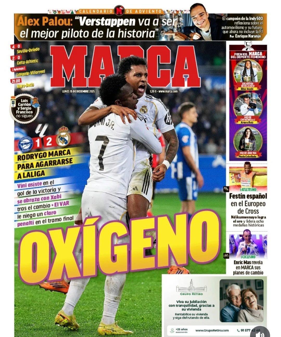 皇马 《马卡》罗德里戈进球,紧紧抓住西甲维尼修斯助攻,和阿隆索拥抱VAR在最后阶段否认了一个很清晰的点球