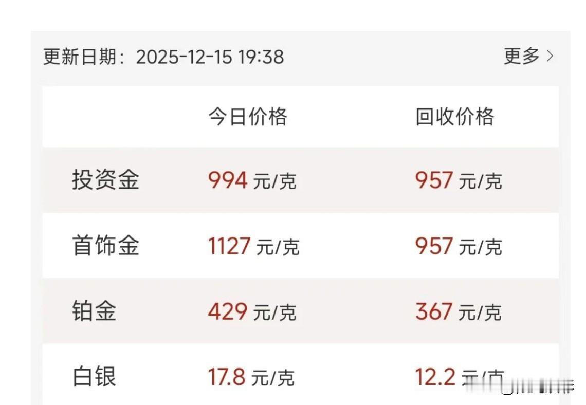 快看 晚上水贝黄金批发价格查询! 投资金994元/克,回收价格957元/克, 首饰金1127元/克,回收价格957元/克。 同比与上午投资金和首饰金各下降了3元,回收价格各上调2元,铂金和白银价格基本平稳。 水贝黄金得特点: 1:价格透明:以“国际金价+工费”模式计价,工费低至几元到几十元/克。 2:款式丰富:涵盖传统金饰、3D 硬金、古法金:5G黄金等最新工艺。 3:交易量大:每日黄金交易量以吨计,价格波动紧跟国际金价。 还是那句话,所有信息,都只是提供参考价值,入市有风险,请谨慎投资! 黄金回收价攀升 黄金回收价 水贝黄金打金 水贝黄金配货 水贝黄金暴雷 上海水贝黄金 黄金足金水贝