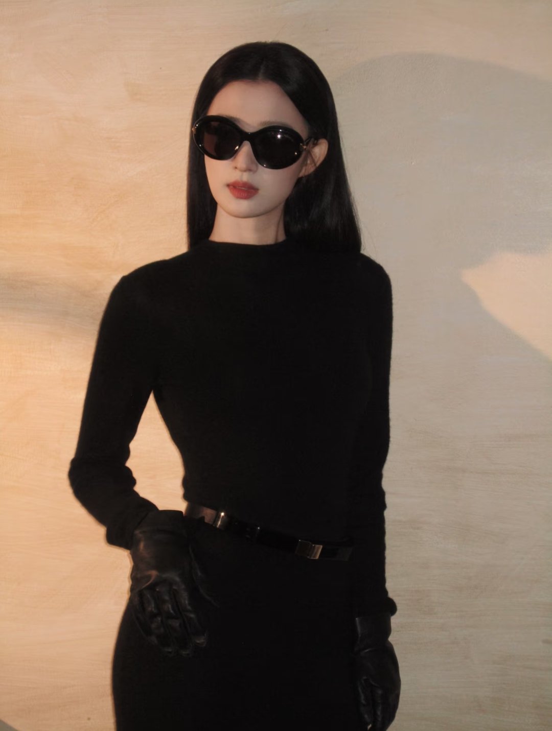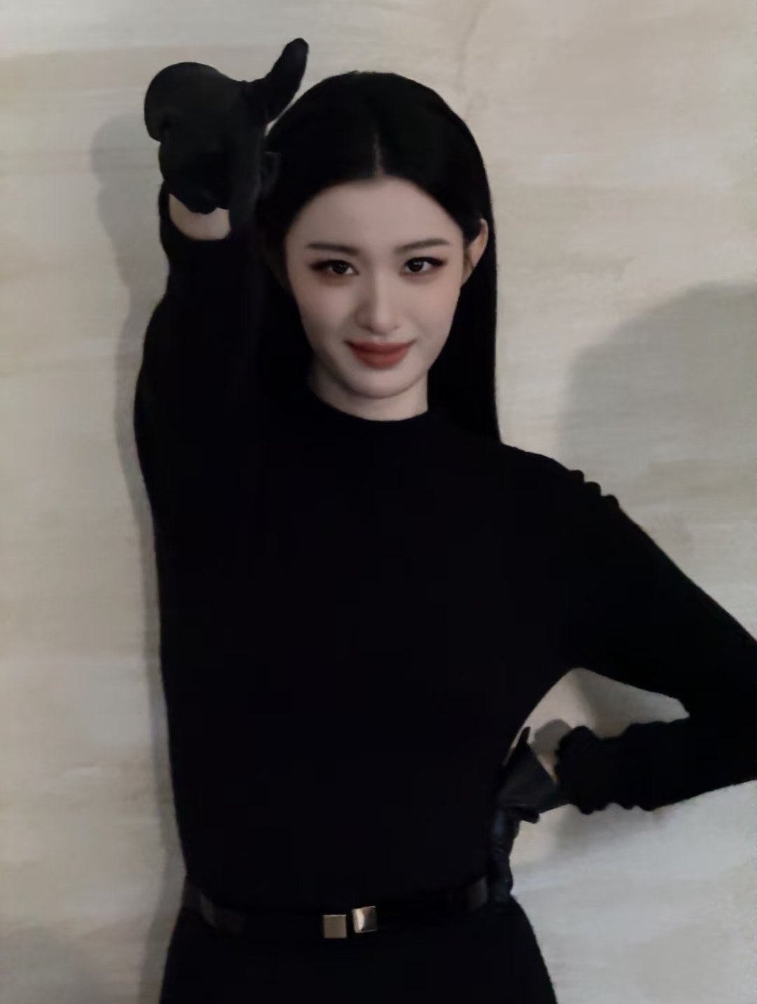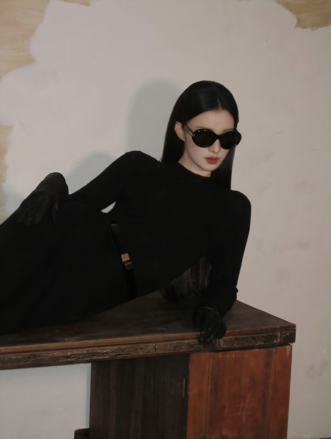 戴墨镜🕶️ + 黑色穿搭的王楚然~