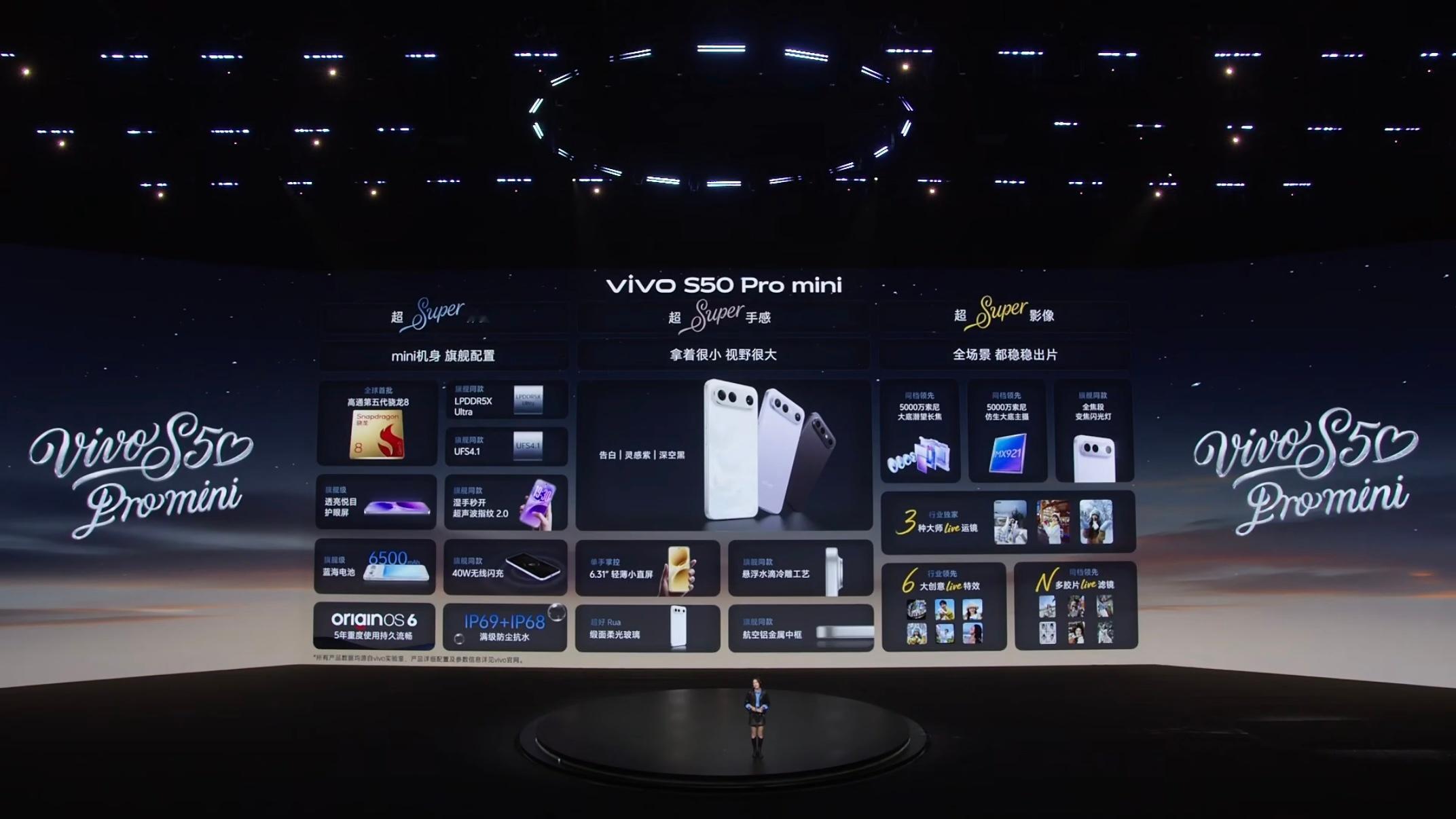 vivo S50 Pro mini vivo是把小尺寸坚持下来了,性能也一直在提升。这次,是第五代骁龙8、LPDDR5XUltra、UFS4.1还有6500mAh大电池,40W无线快充,超声波指纹 。弥补了不少上一代的小遗憾。