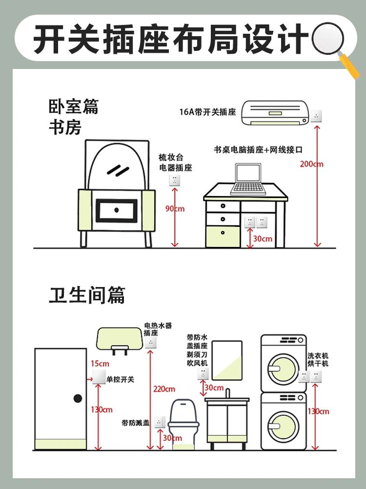 开关插座在装修的时候没弄好,之后会有很多麻烦,下面说了一些基本的开关插座布局,希望对你们有用哦~