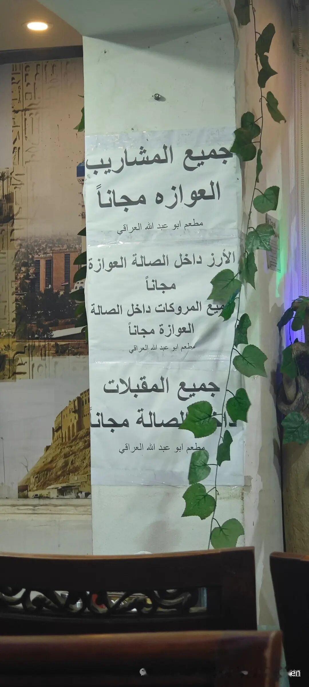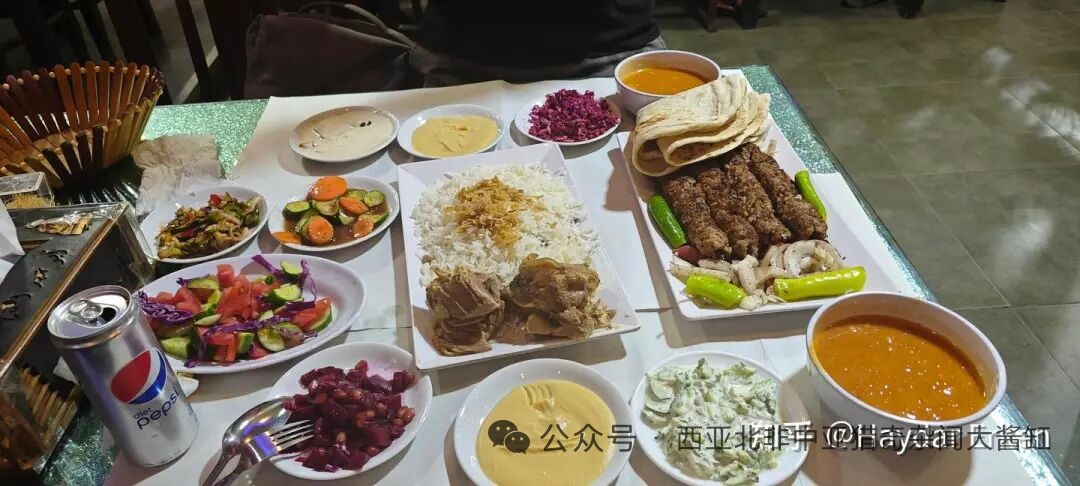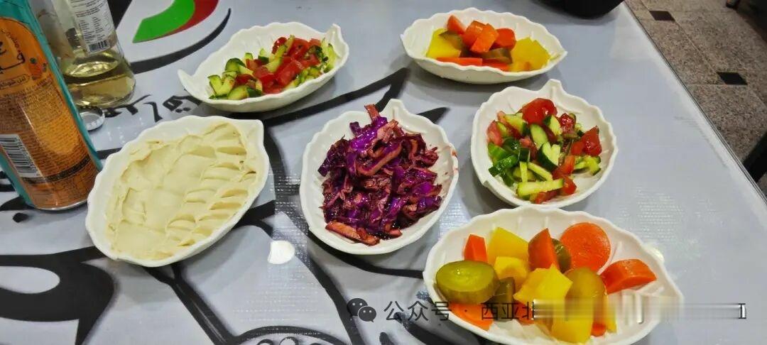 按照阿拉伯饭店的规矩,食客确定要点菜的时候,就应该奉上前菜拼盘了,这种一般叫做(Mezza),一般是不要钱的,整个阿拉伯国家的品类区别不大。这是我在埃及吃到的满配前菜,基本上包括以下几种:鹰嘴豆泥hummus、芝麻酱tahina、茄子泥Baba Ghanouj(会分成几个版本,辣味和不辣的,加芝麻酱的、加酸奶的等版本)、coleslaw沙拉、甜菜、阿拉伯泡菜(torshi或叫做mukhallal)、“俄罗斯沙拉”(土豆沙拉)、阿拉伯沙拉(西红柿、青椒、洋葱、黄瓜、欧芹碎组成)、油炸茄子等。伊拉克的前菜种类大差不差,特点有:伊拉克的tahina芝麻酱非常浓稠,泡菜口感更酸,图中的卷心菜是特色之一。伊拉克的前菜普遍比较甜,喜欢用甜菜,芝麻酱口味要比埃及的浓重。伊拉克餐厅点一个主菜会附赠一些配餐,除了沙拉之外,肉汤和矿泉水、饮料、大饼都是免费且无限续的。这是伊拉克餐厅门口贴的标语,意思是在店内消费(我估计是有别于外卖),一切饮料、米饭、肉汤、配菜皆免费。所以说阿拉伯人自古以来对伊拉克人的刻板印象之一在于其慷慨是有道理的,虽然埃及餐厅实际上这些也是免费且无线续的,但像伊拉克餐厅一样敢于公开宣传这件事的确实不多见——据我所见,埃及餐厅会允许你续一些配菜,但有的老板会很不情愿,黑着脸和店员不知在叽咕什么,但还是会给你续的。kibbeh伊拉克的kibbeh和沙姆地区不一样,这里的kibbeh有时用布格麦,也就是棕小麦制作,或是用捣碎的土豆+淀粉制作外皮(叙利亚等地主要用布格麦),土豆做的外皮算是伊拉克的特色。里面要么是纯肉馅,要么是加了类似dolma一样的肉馅米饭混合物,再加一些松子碎等等,形状大多为圆形,颜色要比沙姆地区的浅一些,金黄色居多,而沙姆地区棕色较多。在叙利亚,kibbeh是阿勒颇的最为出色,kibbeh做法很多,可以烤制可以油炸,也可以与酸奶搭配炖煮成菜,但在伊拉克,几乎只有油炸一种吃法。此外,伊拉克还有一种看不出原型的kibbeh,叫做“摩苏尔kibbeh”(Kibbeh mawsiliyyah),形状和味道类似埃及的牛肉饼hawawshi,也比较类似新疆地区的肉馕,与前者的区别在于埃及肉饼是烤制或铁板煎制的,伊拉克的是油炸的,类似新疆的肉馕,但没有肉馕厚。炸豆丸子falafelfalafel在伊拉克也是极为流行的日常食物,但和埃及一味用蚕豆制作或沙姆地区一定会用鹰嘴豆皆不同的是,伊拉克可以同时使用两种豆子制作,不会有人指指点点。据我所见,伊拉克的falafel颜色偏黄,和沙姆地区和埃及地区喜欢在豆泥中加欧芹碎的做法不同,埃及和沙姆地区的falafel里面是绿色的居多,伊拉克的由里到外都是金黄色的。这种falafel是伊拉克街边极常见的小吃,这一点和中东其他地区没什么区别,伊拉克的falafel的特点和其他食物一样,比较原汁原味,香料比较少。炸三角饺SambosakSambosak在中东也是通行的点心,和我国新疆地区的烤包子,南亚的炸三角同源。伊拉克的Sambosak馅料比较喜欢使用牛肉洋葱,加一些黑胡椒调味,而非其他一些地区增加很多香料的做法,也很喜欢在馅料内填入芝士。除此之外,我个人暂时没有找到伊拉克的Sambosak与其他阿拉伯国家有何不同。此外,土耳其传统的点心Börek在伊拉克也是大众食物,在伊拉克叫做“Burak”,也青睐于肉馅为主,而非土耳其更常见的酥皮奶酪馅。伊拉克的版本更为粗放,一般不会制作酥皮。以上就是伊拉克全国最常见的几种食物了,几乎能覆盖多数伊拉克人三餐常见的菜品了。伊拉克菜在阿拉伯世界算出了名的油腻和不健康,比如很多网友会打趣老王为何从不吃蔬菜,各位看到这里,也会发现伊拉克菜几乎没有什么蔬菜的存在感——这就是答案了吧!许多在伊拉克驻外的人也非常不适应当地饮食,因为种类确实不多,口味也很油腻,结合当地的高温,在伊拉克驻外的确是一件苦差事——雪上加霜的是,伊拉克全国各地能吃到的菜也就是我上文列举的这些了,无论是库区还是阿拉伯区,吃法没有什么区别。阿拉伯区的食物基本上就是这几种,库尔德区可能略好一些,有很多土耳其风格的餐厅和沙威玛——事实上在伊拉克全境,也是库尔德人做的旋转烤肉和沙威玛味道更好一些。伊拉克菜在中东算是无肉不欢的一大代表了,不算精致,也找不到太多阿拔斯王朝辉煌精致奢华餐饮的考究——虽然现在阿拉伯语还会有这样的修辞:“巴格达式的生活”,用来形容上层人士极度奢靡、兴产置业的行为,但伊拉克菜更像是近现代奥斯曼殖民与阿拉伯民族主义的融合产物,也许还要加上两味药,一味是91年以来多国联军带来欧风美雨的洗礼,令伊拉克食物增添了许多西式快餐的噱头,一味则是伊朗对伊拉克的深度控制,什叶派的菜肴成为节日的必备。