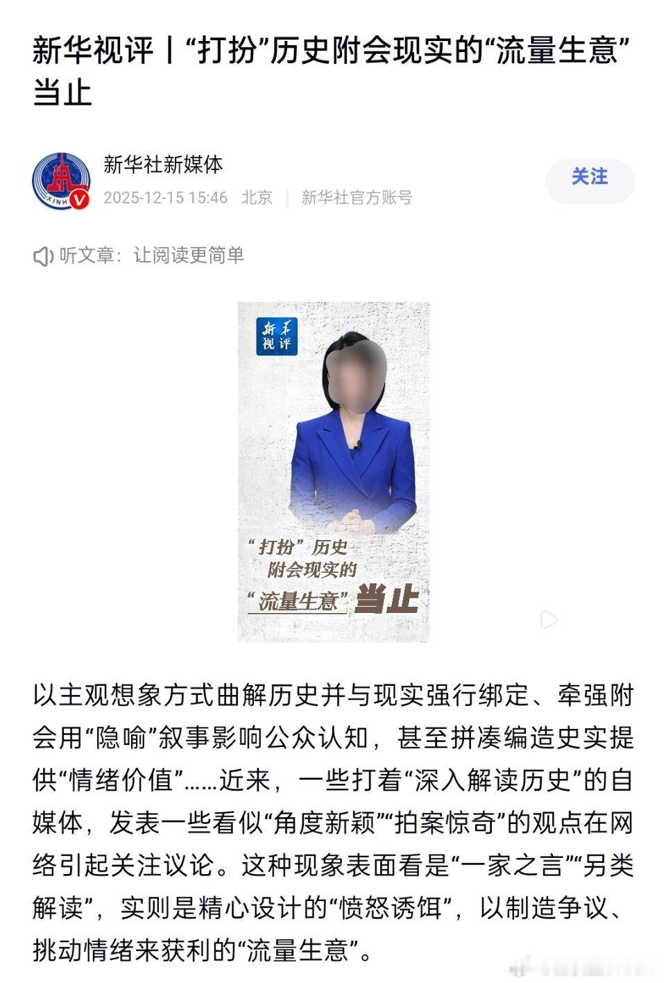 新华视评:“打扮”历史附会现实的“流量生意”当止