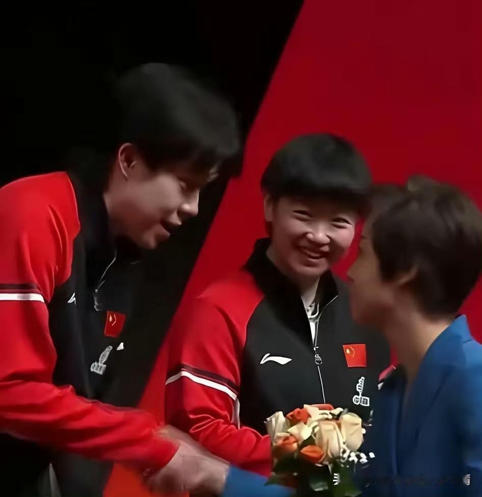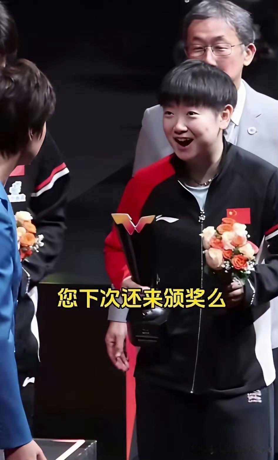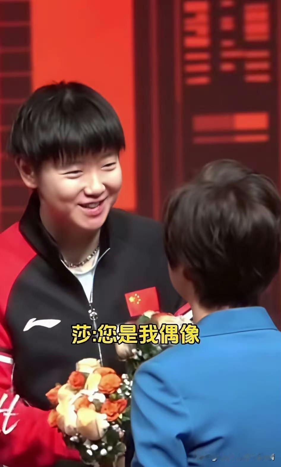 孙颖莎在香港总决赛混双颁奖现场的反应,让球迷瞬间懂了她虽拿亚军却满心欢喜的原因——为她颁奖的正是偶像张怡宁。 莎莎见到张怡宁时,笑着直言“您是我的偶像”,合影后还追着问“下次您还来颁奖吗?”,孩子气的模样满是雀跃。 对莎莎而言,偶像的出现远比赛事结果更珍贵,这份突如其来的惊喜,瞬间驱散了赛场上的压力与遗憾,让她像得到心仪礼物的小朋友一样喜气洋洋,简单的心愿被满足的模样格外动人。