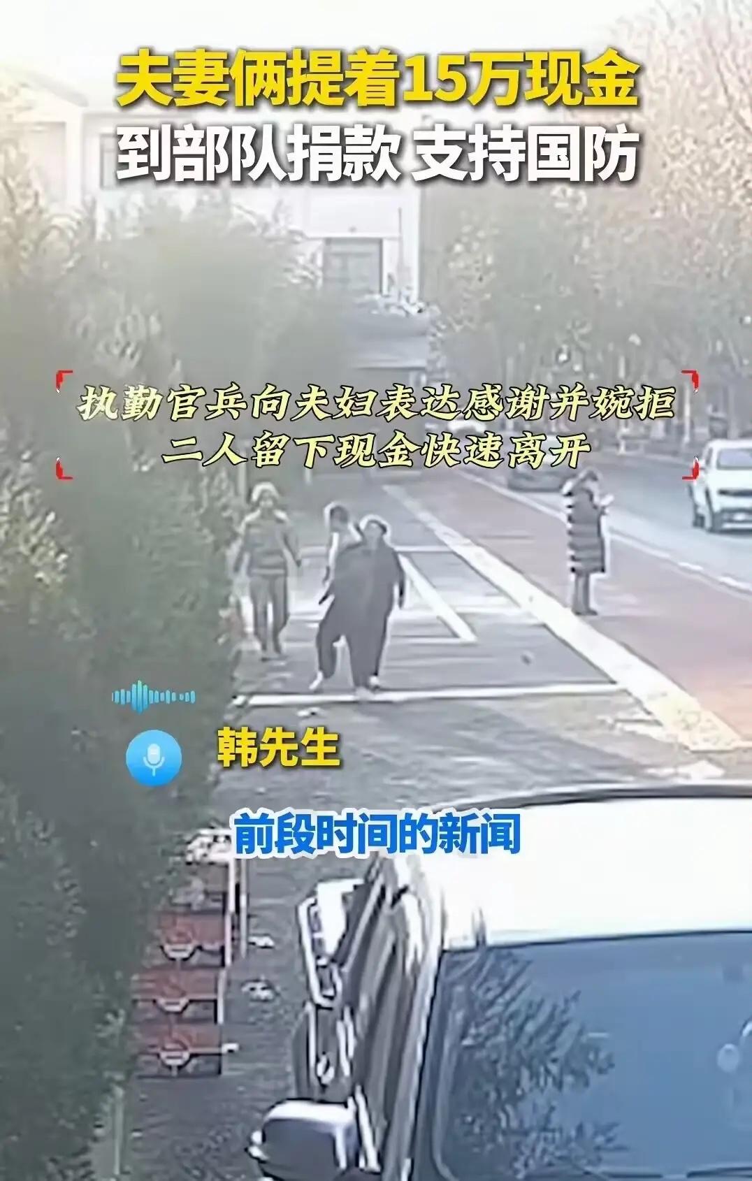 “这对夫妻火了!”山东威海,一对夫妻跑到北部战区海军某支队营区门口,干出了一件轰动全网的大事——他们提着15万现金,满心赤诚地前来部队捐款,只为支持国防建设! 这对夫妻的举动瞬间点燃了全网的热情,也让我们再次感受到那份最纯粹的爱国情怀。在这个快节奏、功利至上的时代,他们用行动告诉我们:真正的爱国,不是嘴上说说,而是用实际行动去践行。这一幕,既温暖了无数人的心,也让我们反思:在个人的生活中,如何才能更好地表达那份对国家的深厚感情? 他们是谁?为什么会选择在这个特殊的时刻,带着满满的诚意,走到部队门口?有人说,这是新时代的“最美逆行者”;有人说,这是普通人的伟大选择。其实,他们只是我们身边的普通人,却用最不普通的行动,诠释了“爱国”的真谛。 这对夫妻,或许没有豪言壮语,没有惊天动地的事迹,但他们用“捐款”这一最朴实的方式,表达了对国家、对军队的敬意。那15万现金,代表的不仅是金钱,更是他们对国家未来的信心和期望。每一张钞票,都凝聚着他们的爱与责任,也传递出一种强烈的正能量——只要我们心怀梦想,心怀祖国,就没有做不到的事情。 更令人感动的是,他们的举动在网络上引发了巨大反响。有人点赞他们的勇气,有人感叹他们的善良,也有人开始反思:在我们身边,是否也有像他们一样,默默无闻却又充满力量的普通人?他们用行动告诉我们,爱国不仅是口号,更是行动,是在平凡中彰显伟大。 这件事还引发了更深层次的思考:在当今社会,物质丰富的同时,精神层面的价值是否被忽视?我们是否还记得那份最纯粹的爱国情怀?这对夫妻的善举,像一面镜子,映照出我们每个人心中那份对国家的热爱。也许,我们都可以从身边的小事做起,用行动去支持国家的发展,用心去关爱那些为我们守护和平的人。 他们的故事还在继续,也许未来会有更多的人被激励,加入到支持国防的行列中来。因为,国家的强大不仅仅靠武器和科技,更需要每个人心中的那份责任感和使命感。正如这对夫妻所做的,他们用实际行动证明:只要心中有爱,平凡也能变得伟大。 我们也要记住,国家的未来在于每一个普通人的努力。无论是捐款、志愿服务,还是在日常生活中传递正能量,每一份善意都在为我们的国家添砖加瓦。正如那满心赤诚的夫妻,他们用行动告诉我们:爱国,不是空话,而是要用心去实践。 最后,让我们为这对夫妻点赞,也为所有默默奉献、无私付出的人们鼓掌。你我都可以成为那个传递正能量的火种,用行动点亮身边的每一个角落。因为,只有每个人都行动起来,我们的国家才会更加繁荣昌盛。让我们携手同行,共同书写新时代的爱国篇章!威海捐款夫妻