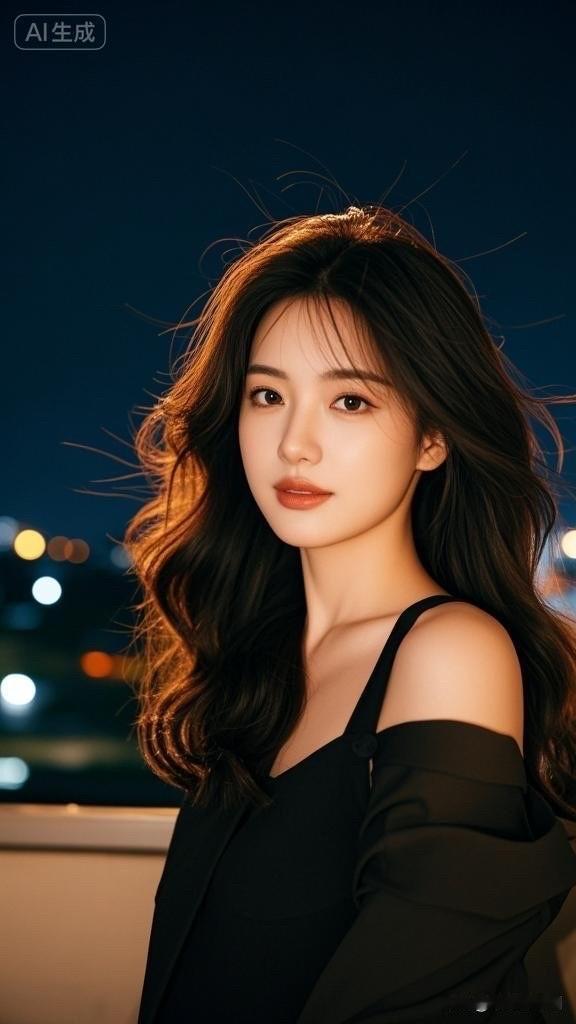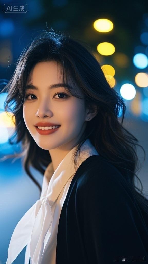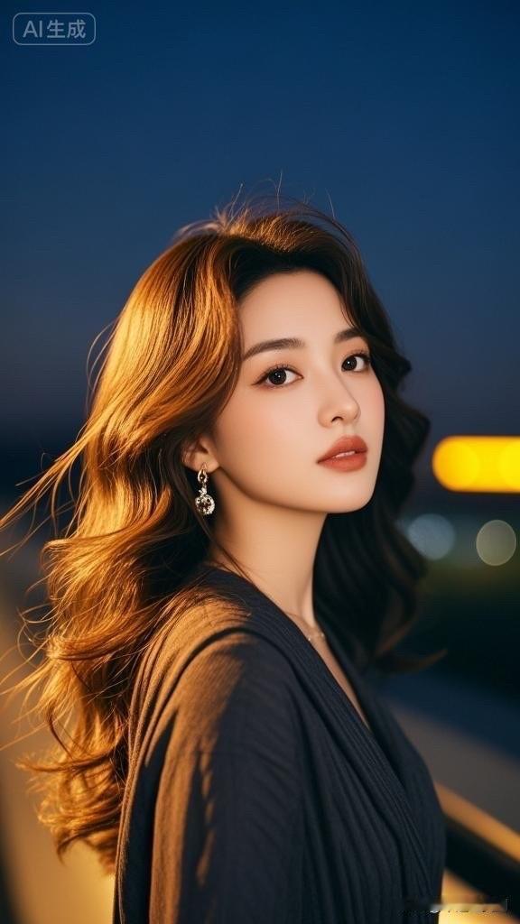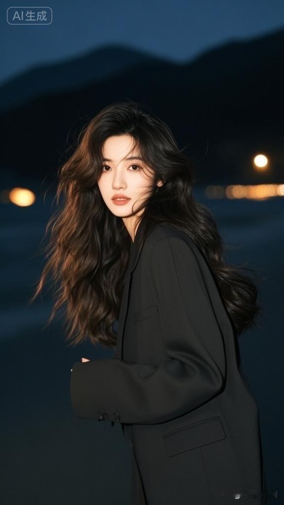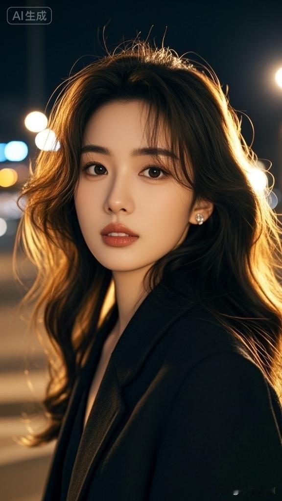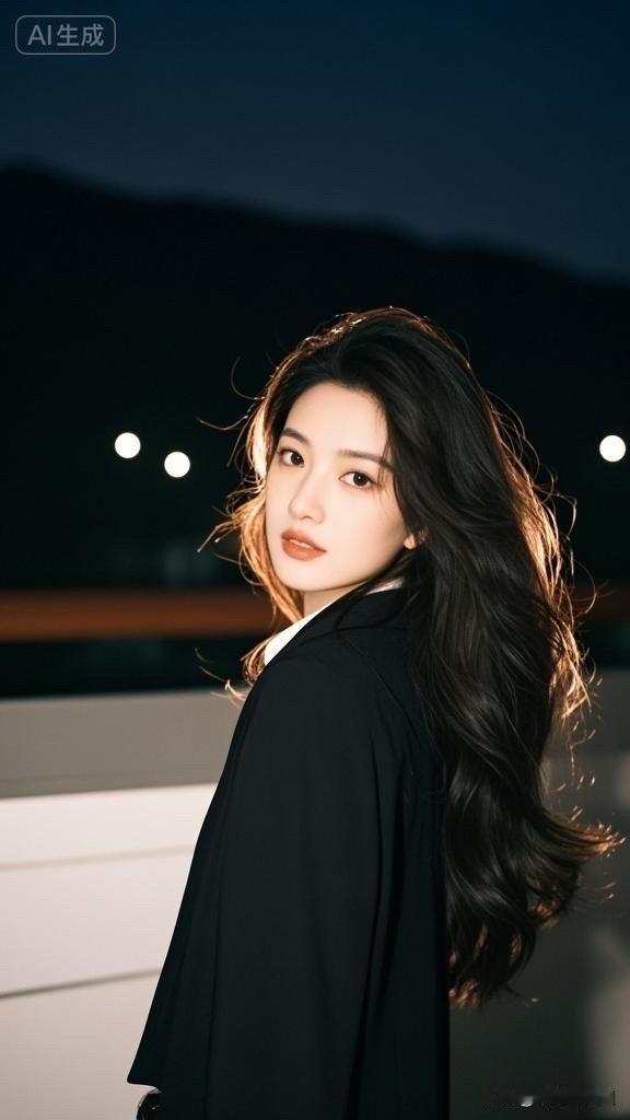 夜晚的灯光下,她优雅地转身,散发着迷人的魅力。
