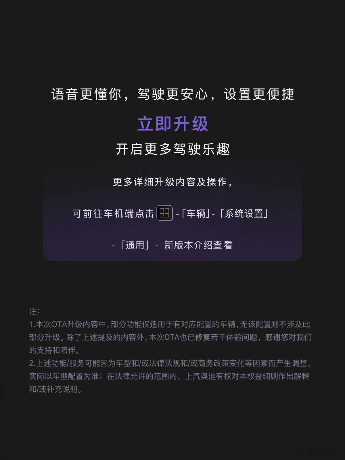 我的车今天好像有情绪了车辆“有情绪”的背后,是人车关系的三层演进:故障警报是工具属性的“生理信号”,智能交互是拟人化的“情感对话”,而车主的情感投射则让车成为“陪伴载体”。奥迪E5的OTA升级正是强化了第二层——通过动态助手与长期记忆,将交互从功能响应升级为情境互动,赋予机械以“性格”。这种设计既缓解了故障警告带来的焦虑,也满足了用户对陪伴感的情感需求。然而,真正的安全仍建立在理性认知之上:车的“情绪”终究是算法与传感器的表达,而非自主意识。在享受智能带来的温情时,我们仍需清醒维护、及时检修,让技术真正服务于可靠、安全的出行体验。大v聊车AUDI迎来大规模OTA