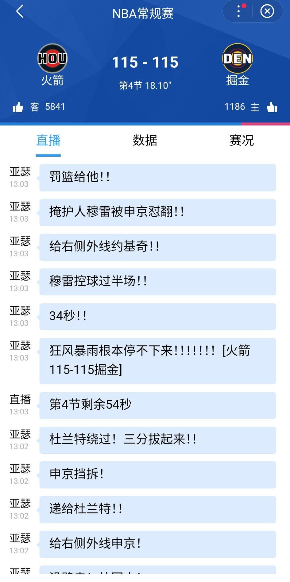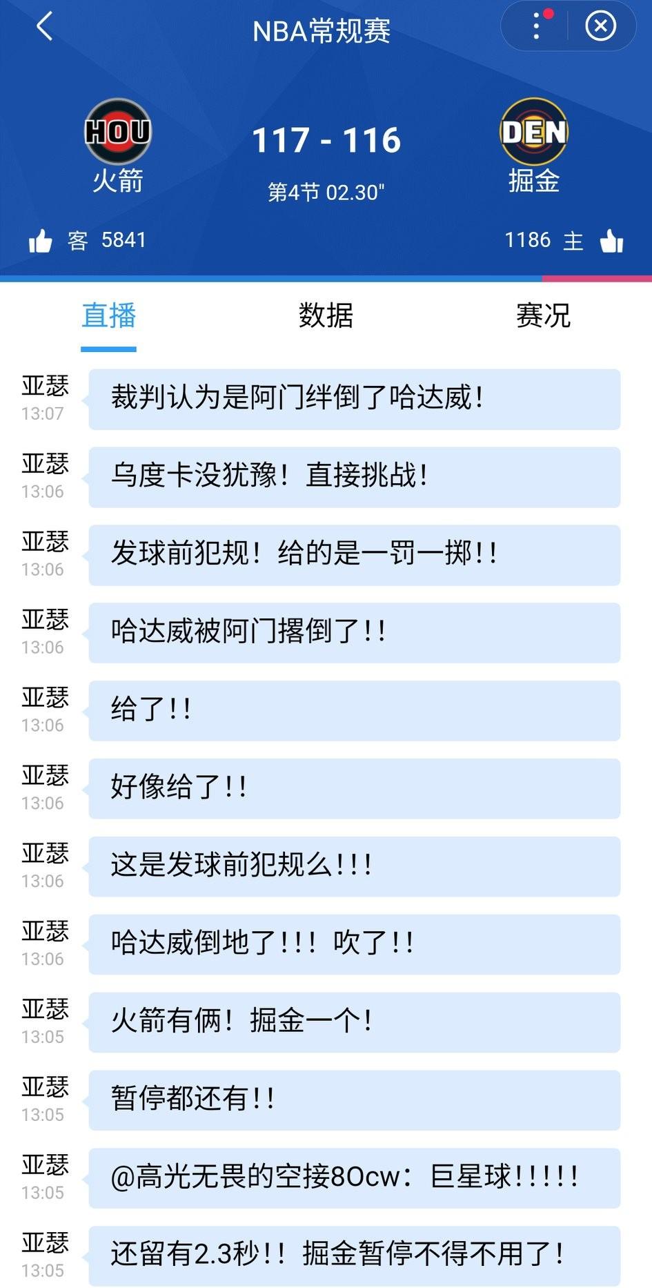 这些人都是什么心脏,最后一分钟下起了三分雨,约老师、谢泼德、杜兰特……115打平。 穆雷罚球领先1分,火箭还以2分,现在火箭117-116领先掘金。 还有2.3秒,这会是绝杀吗?掘金只能用完最后一个暂停。 裁判给了火箭发球前犯规,一罚一掷,太伤火箭了,乌杜卡直接挑战。 没有改判,裁判开始发力了…… 加时!!!