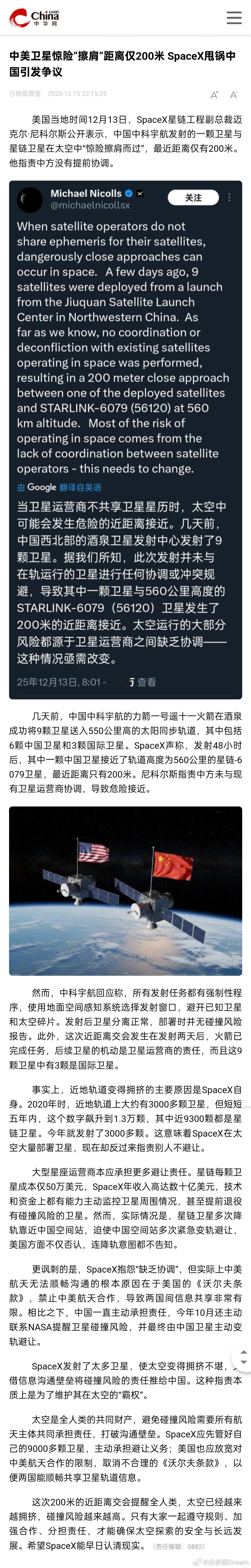 中美卫星仅距200米惊险擦肩🔻美国的星链每颗卫星成本仅50万美元。🔻2025年,近地轨道上有1.3万颗卫星。🔻其中近9300颗都是星链卫星。🔻今年就发射了3000多颗星链卫星。🔻美国制造这么多太空垃圾,国际社会就没有约束美国的手段吗?