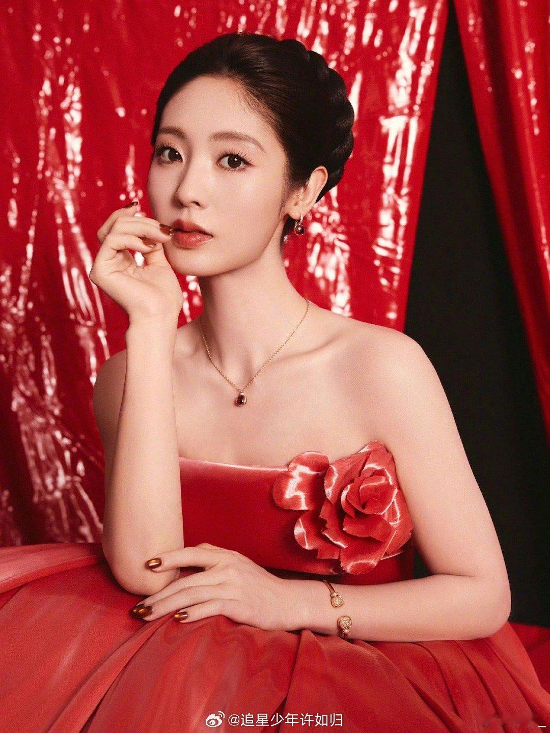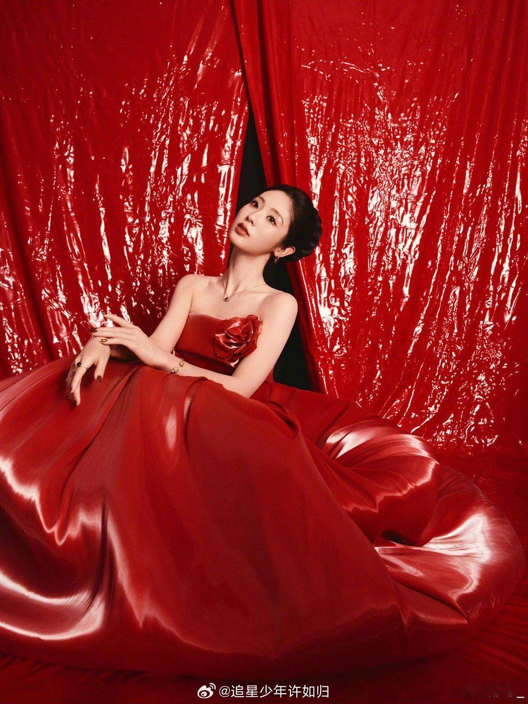 邢菲好亮眼的一抹红 被邢菲的红裙造型狠狠戳中!抹胸大摆礼服尽显气场,亮眼红色衬得她明艳动人,流光溢彩的模样直接点亮冬日,妆造细节拉满,每次都能带来新惊喜~