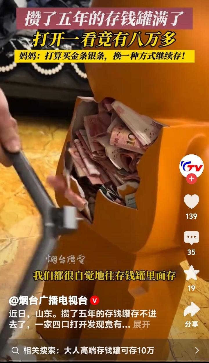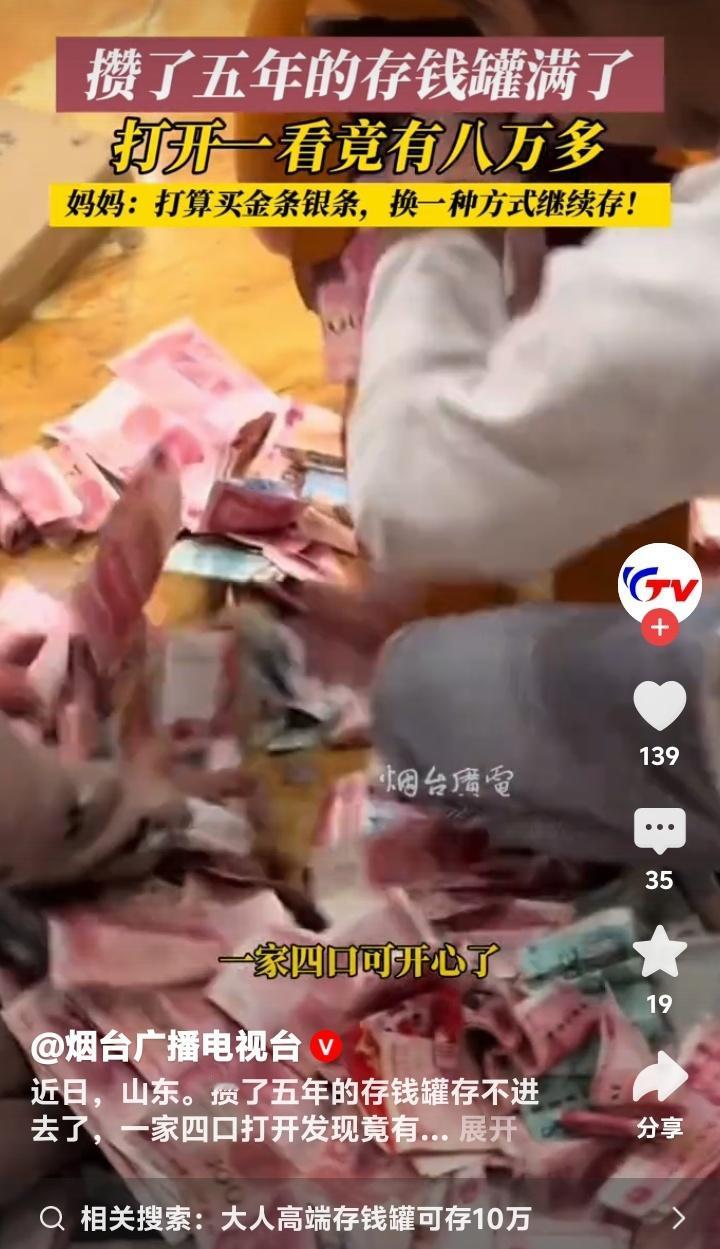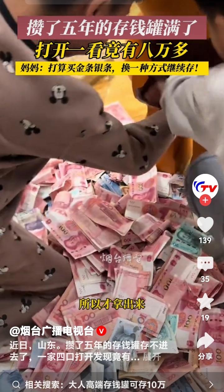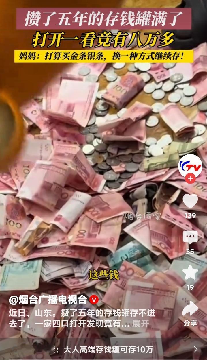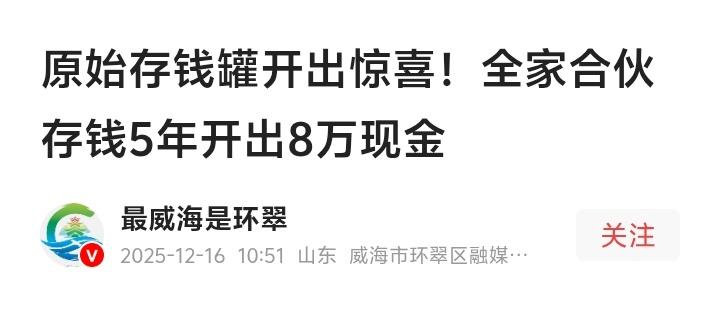 山东威海沈女士家存钱罐爆出“巨款”真相:五年82580元现金背后,藏着一个让千万家庭沉默的财富密码! 那只摆在客厅角落的陶瓷存钱罐,终于满得再也塞不进一张纸币。当沈女士一家四口撬开它时,堆积如山的零钱和钞票,在银行柜台清点出了八万两千五百八十元的数字。这个瞬间,不仅是一个家庭的惊喜,更像一面镜子,照出了无数人在数字支付时代遗忘的财富本能。 我们早已习惯指尖轻点完成交易,纸币的触感在记忆里逐渐模糊。沈家这八万多元,没有复杂的理财公式,没有惊心动魄的投资故事,只是一家人五年间顺手放入的压岁钱、购物找零、偶尔的现金结余。正是这种“无意识”,成就了最有力量的积累。 这沉甸甸的八万多元,本质上不是钱的重量,而是时间的重量。它由无数个“算了,不花了,存起来吧”的微小念头铸成。在消费主义无孔不入的今天,这种近乎笨拙的克制,反而成了最稀缺的财富美德。它告诉我们,守护财富有时不需要高深知识,只需一点耐心和共同的约定。 沈女士计划将这笔钱换成金条银条,为两个儿子继续储存未来。这个决定,从存钱罐到贵金属,形式在变,但内核未变:那是一种跨越代际的、关于“守护”与“期盼”的家族仪式。它让财富脱离了冰冷的数字,承载了温度与传承。 反观我们自己,电子钱包里的数字来得快,去得更快。便捷的同时,也偷走了我们对财富积累的实感和掌控感。沈家的存钱罐像一声警钟,提醒我们是否在虚拟消费中,弄丢了让财富真正沉淀下来的能力。 这个故事最动人的,并非金额,而是全家四口“都很自觉地放进去”的默契。它没有强制,成了一种自然的家庭文化。这种共同的财务参与感,或许比钱本身更能凝聚一个家。它让我们看到,理财教育最好的课堂,就在日常生活的细微之处。 有网友感叹“不是一般家庭”,但真正不一般的,或许是那份在浮躁时代里,能安静下来、相信时间的心境。财富的种子往往就藏在那些被我们忽视的日常缝隙里,等待一个家庭用共同的耐心去浇灌。 从山东威海这个普通家庭满溢的存钱罐里,我们挖出的不仅是一笔意外之财,更是一个朴素的真理:最快的理财捷径,有时就是最慢的坚持;最动人的财富故事,往往始于一个全家人都愿意相信的、简单的开始。 (来源:起点新闻、烟台广播电视台、威海环翠区融媒体中心相关报道) 存钱罐奇迹 家庭理财