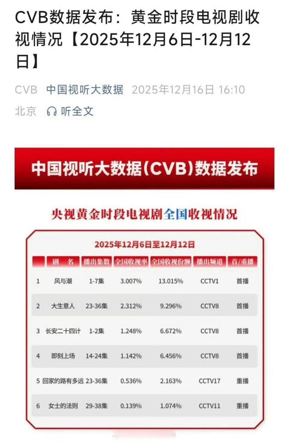 任嘉伦《风与潮》作为上星大剧,数据不会说谎,拿下2025年央一首播CVB拉