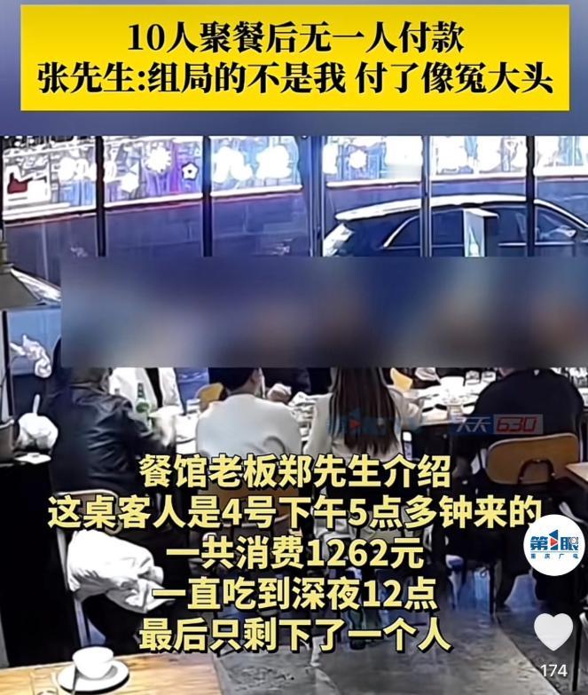 重庆一男子被朋友邀请到饭馆吃饭,吃到半夜12点左右后,朋友纷纷散去,只剩下男子一人在现场,结果服务员要男子买单,男子却表示自己是被邀请来的,不是自己请的客,报警之后,男子依然表示,自己如果买了单,这不是成冤大头了? 这事发生在重庆沙坪坝区一家人气夜宵店,老板李哥做了八年夜宵生意,见惯了各种酒局场面,却从没遇到过这么棘手的情况。 当事人姓王,大家都叫他老王,今年三十五岁,在一家建材市场做销售,平时朋友不少,经常参加各种聚会。 事发当晚八点多,老王正在家里看电视,突然接到朋友老张的电话,说几个老同学难得聚齐,约在李哥的夜宵店吃饭,特意喊他过来热闹热闹。 老张是老王的发小,两人关系一直不错,之前也经常互相请客吃饭,老王没多想,换了身衣服就打车赶了过去。 到了店里,包厢里已经坐了七个人,除了老张,还有四个老同学和两个不认识的人,老张说是他生意上的伙伴。 刚坐下,老张就热情地递过菜单:“老王来了,随便点,今天我做东,大家吃好喝好。” 老王客气了两句,说大家已经点得差不多了,自己再加个拍黄瓜就行,随后就加入了酒局,和老同学们聊起了近况。 酒局气氛很热烈,大家边吃边喝,互相敬酒,老张更是频频举杯,和生意伙伴聊得十分投机。 老王酒量不算好,喝了几杯就有点上头,中途去了两趟洗手间,回来后发现桌上的酒已经换了第二箱。 到了晚上十一点多,酒局渐渐散了,老张的两个生意伙伴先起身告辞,临走时拍了拍老张的肩膀,说下次再聚。 随后,几个老同学也陆续离开,有人走的时候还跟老王说“下次再约”,老王迷迷糊糊地应着,坐在椅子上缓酒劲。 老张是最后一个走的,他走到老王身边,说自己有点急事要先撤,让老王再坐会儿,还拍了拍老王的胳膊,说“麻烦了”。 老王当时酒劲正浓,没多想老张这话的意思,只以为是让自己帮忙照看一下包厢,点头应了下来。 等到半夜十二点,店里的客人基本都走光了,服务员小张走过来,笑着对老王说:“哥,麻烦结下账,一共1860元。” 老王一听这话,瞬间清醒了大半,皱着眉说:“结账?今天是我朋友老张请客,他说他做东,怎么让我结账?” 小张愣了一下,说:“可是刚才走的几个人都没结账,最后走的那个先生也没说要买单,只说让你再坐会儿。” 老王赶紧拿出手机给老张打电话,可电话打了好几遍,要么没人接,要么直接挂断,微信消息也发了,迟迟没有回复。 老板李哥见状,走过来跟老王沟通:“兄弟,不管是谁请客,饭吃了总得结账,我们也是小本生意,拖不起。” 老王急得满头大汗,解释说自己真的是被邀请来的,要是自己结了这账,岂不是成了冤大头,传出去还不够丢人的。 双方僵持了半个多小时,老张还是联系不上,李哥怕事情闹大,提议让老王先报警,让警察来协调。 老王也没别的办法,只能拨通了110,民警很快赶到现场,询问了事情的来龙去脉,也尝试联系老张,同样没有接通。 面对民警,老王态度十分坚决:“警察同志,我真不是故意不结账,要是我主动请的客,多少钱我都认,可我是被邀请来的,现在让我买单,这道理说不通啊,我要是买了,就成冤大头了。” 民警考虑到双方都有难处,一边安抚老王的情绪,一边跟李哥沟通,建议先让老王留下联系方式和身份信息,等联系上老张再处理。 李哥有点不情愿,但看着民警的面子,还是同意了这个方案,让老王写了张字条,留下了身份证号和手机号。 凌晨一点多,老王才离开餐馆,回家的路上还在给老张打电话,依旧没人接,心里又气又急。 第二天一早,老王终于接到了老张的电话,电话里老张一个劲地道歉,说昨晚喝多了,回家就睡着了,手机也调成了静音。 老张还说,自己本来打算第二天一早就去结账,没想到让老王受了这么大委屈,随后就赶到餐馆,把1860元的账结了。 这事本该就此结束,可没想到,李哥的一个朋友把这事发到了网上,还配上了当晚的监控截图,很快就引发了网友热议。 有网友觉得老王做得对:“被邀请吃饭凭什么买单?要是我我也不结,这不是钱的事,是原则问题,不能当冤大头。” 也有网友觉得老王有点较真:“都是朋友,先把账结了再找朋友要不行吗?让老板为难也不好,毕竟人家开门做生意。” 老张结账后,特意请老王吃了顿饭赔罪,两人聊开后,老王也原谅了他,这事才算真正平息。 信源:10人聚餐消费1262元9人开溜,店主:无人结账,将起诉追讨-度小视