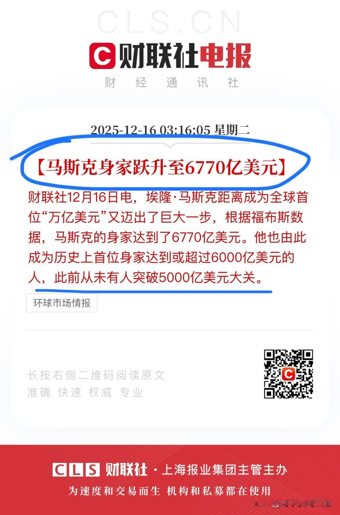 马斯克身家已达6770亿美元!这6770亿美元究竟是个什么概念? 这么说吧,目前他已经稳坐地球首富的位置,在未来的很长一段时间里应该都不会有人能够撼动他的位置! 要知道,在马斯克以前就从来没有谁能超过6000亿,而且不仅是6000亿,甚至是5000亿都没有人做到过! 如果有人还觉得这个比较抽象,我再来举一个身边的例子。 目前A股市值最高的是工商银行,市值为2.78万亿,排名第二的是农业银行,市值为2.58万亿! 人民币兑美元最新的汇率是7.04,换算过来的话马斯克的身家就是差不多4.7万亿人民币! 这也就是说马斯克一个人的身家就快赶上A股市值前两名的总和了! 但这还不是最夸张的,如果明年SpaceX成功上市的话,马斯克的身家有可能再次大涨,到时候极有可能会达到1万亿美元! 这简直是太夸张了!