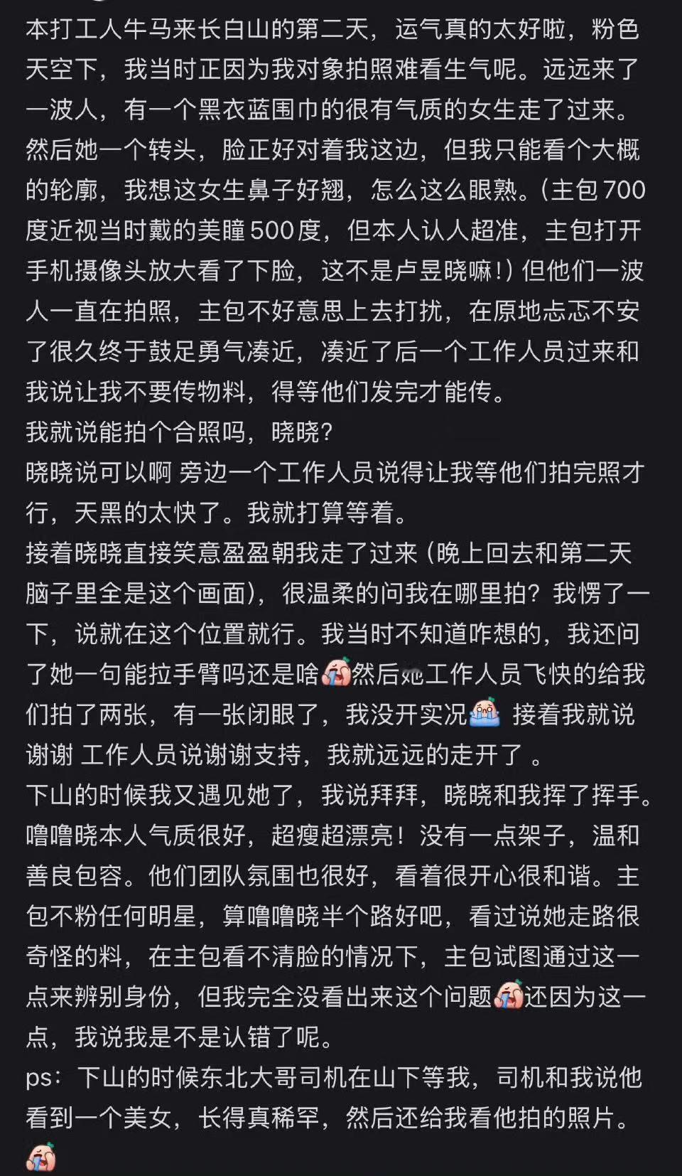 长白山偶遇卢昱晓合照 这个噜噜晓也太好了吧~羡慕偶遇的网友!