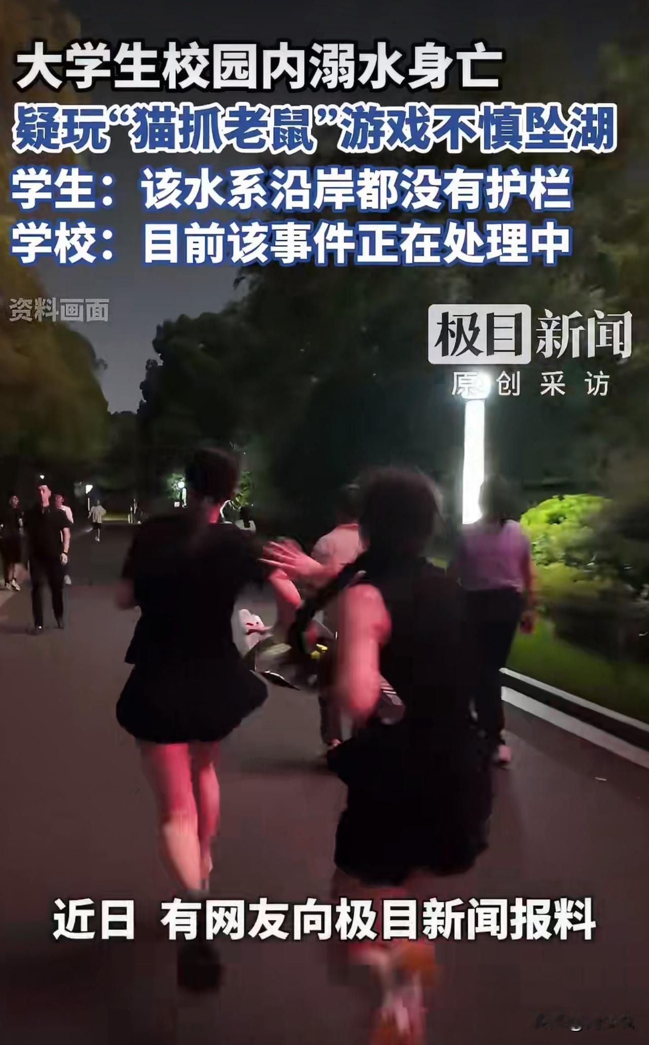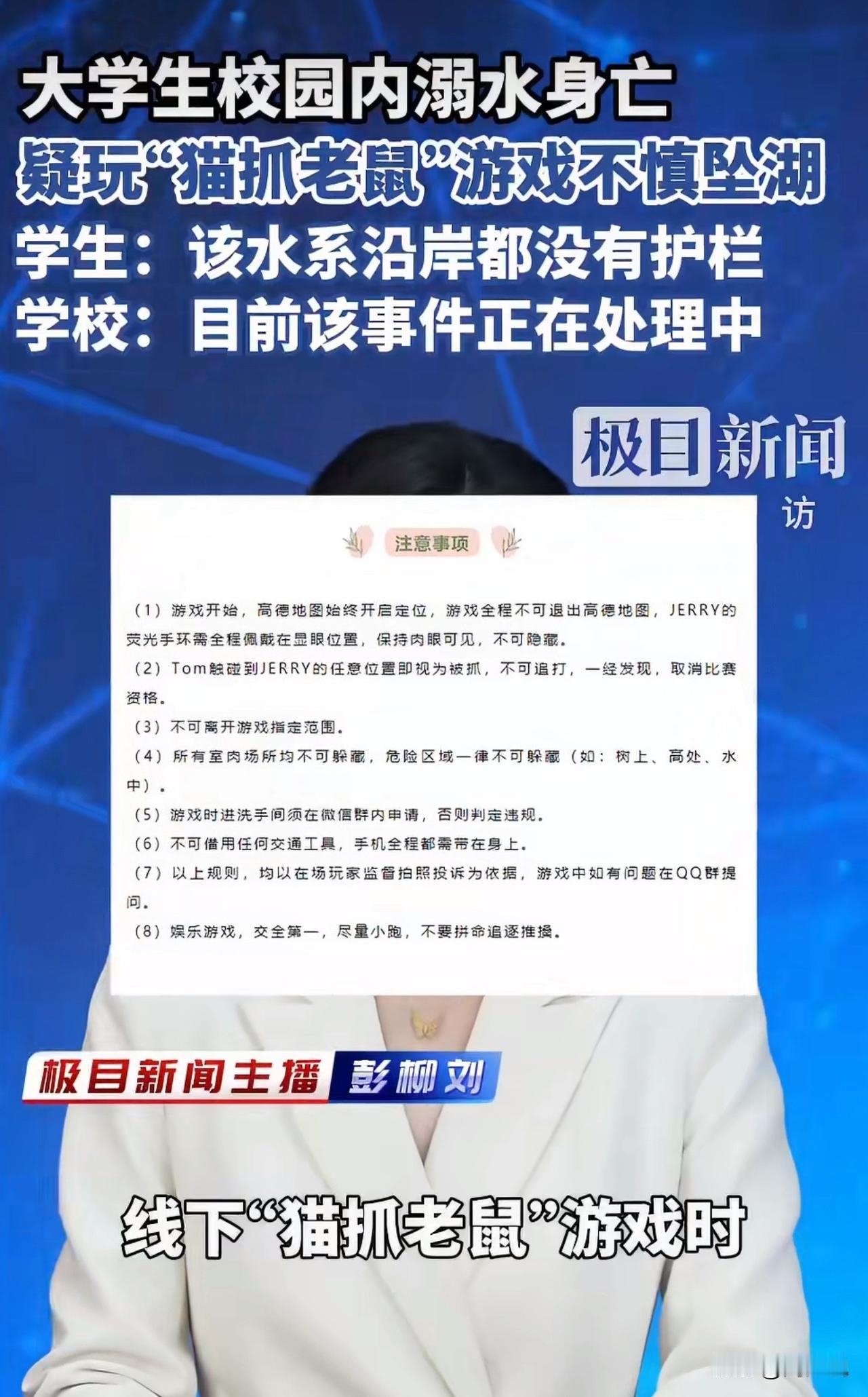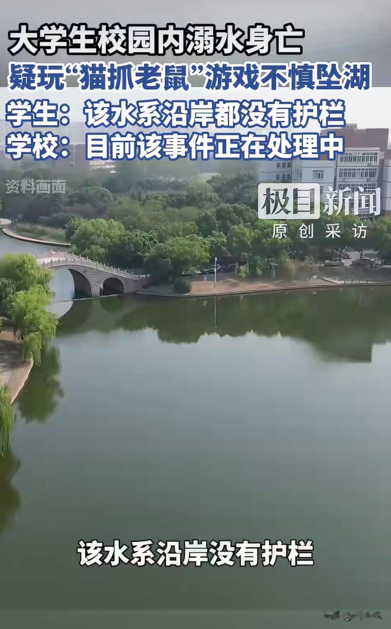 痛心!安徽芜湖一高校突发悲剧,刚入学的大一新生参与校园组织的线下“猫抓老鼠”游戏时,不慎坠入校内“风行湖”,最终不幸离世,背后原因让人揪心! 该校学生表示,风行湖是校园核心景观水系,沿岸全程无护栏,部分区域夜间光线昏暗,存在明显安全隐患。 针对此情况,学校安全管理处工作人员回应,已高度重视此事,目前正全力处理中。 不少网友纷纷表示:“线下游戏组织者也该反思,活动选址没排查风险,对参与者太不负责!” 周少想说,一条年轻生命的逝去,给所有高校敲响警钟。校园景观打造不能忽视安全防护,活动组织更要把风险排查做到位。 生命无小事,无论是学校、组织者还是参与者,都该绷紧安全这根弦,别让悲剧再因“疏忽”发生,守护好每一份青春与希望,才是校园该有的底色。#寻美三湘# #长沙新朋友#