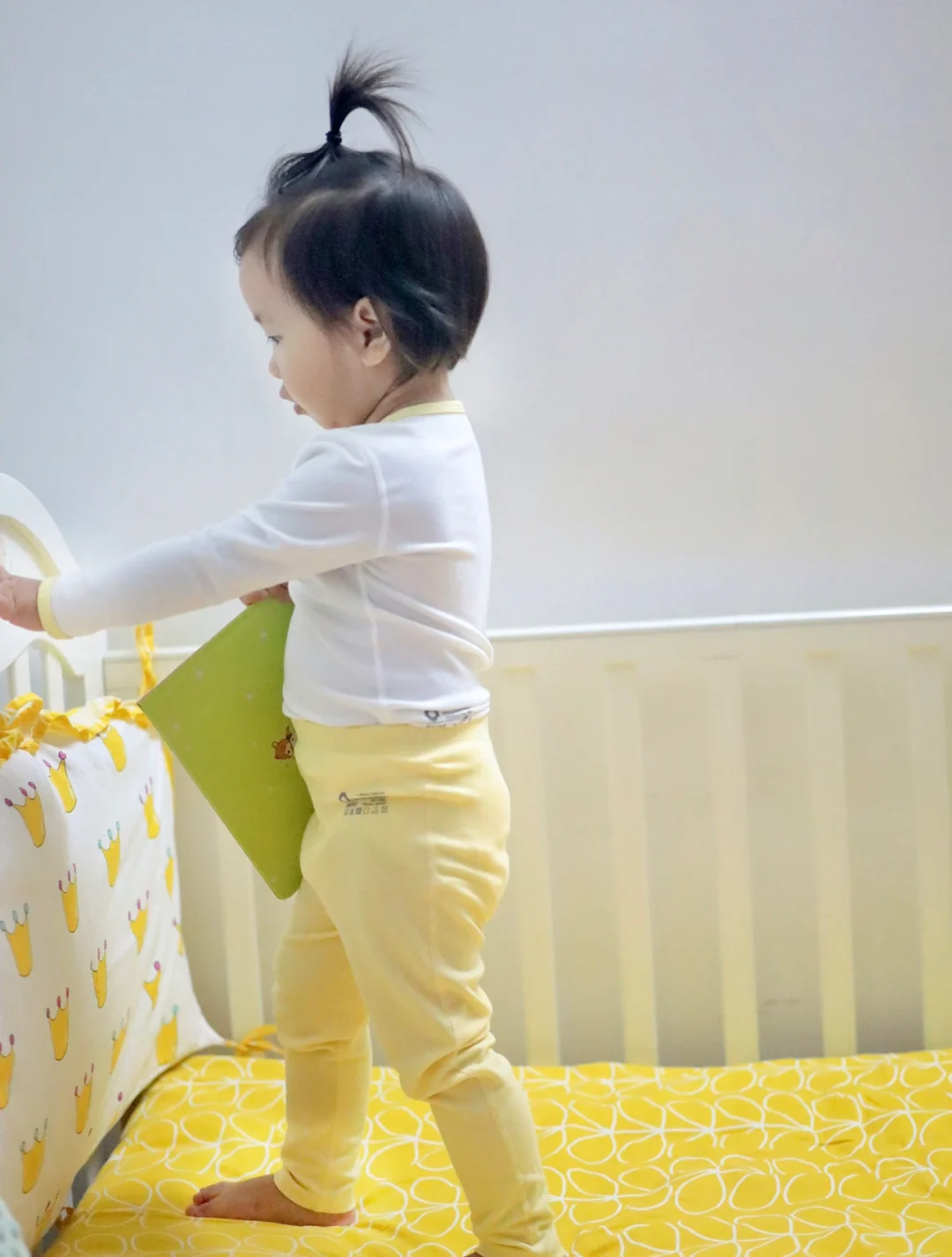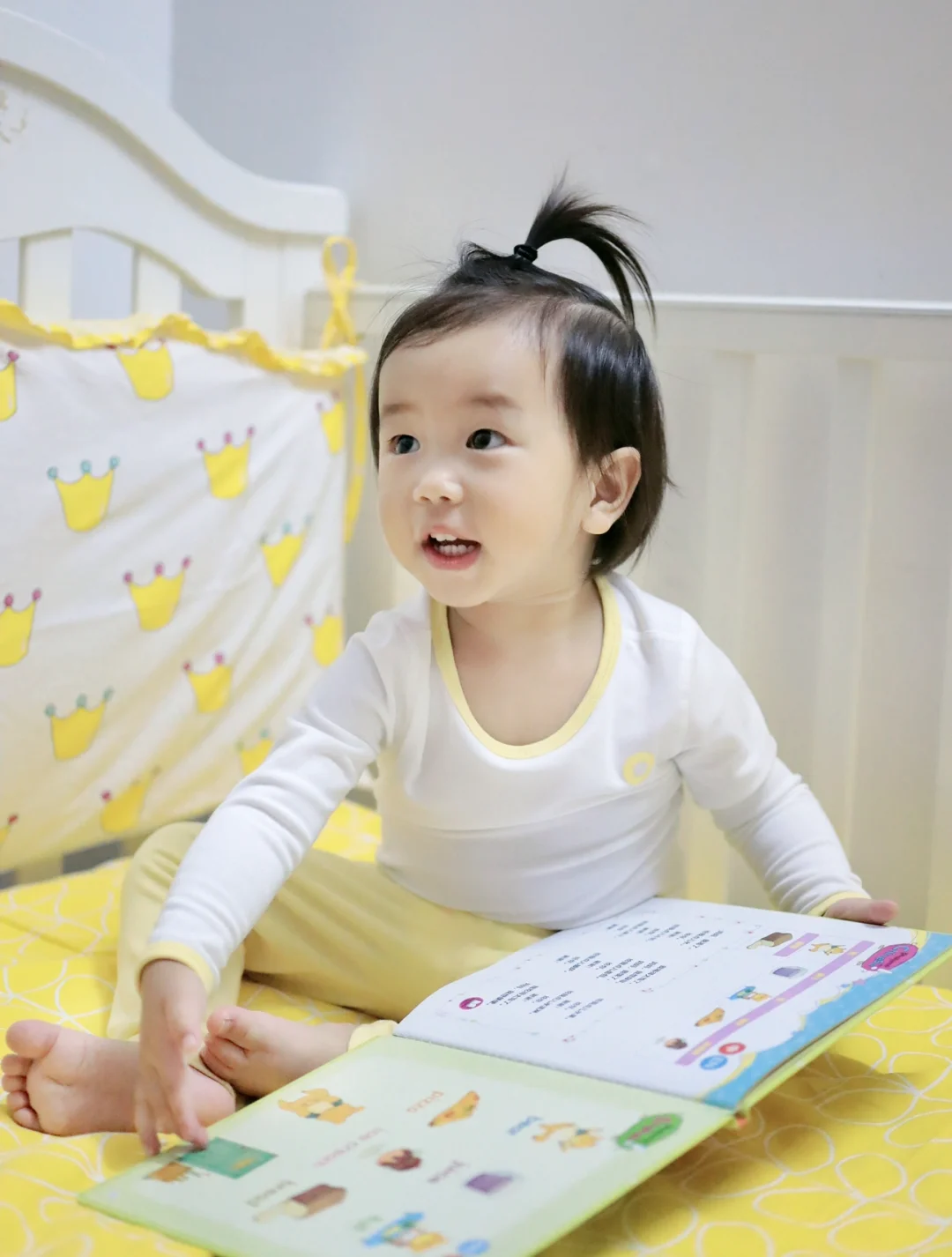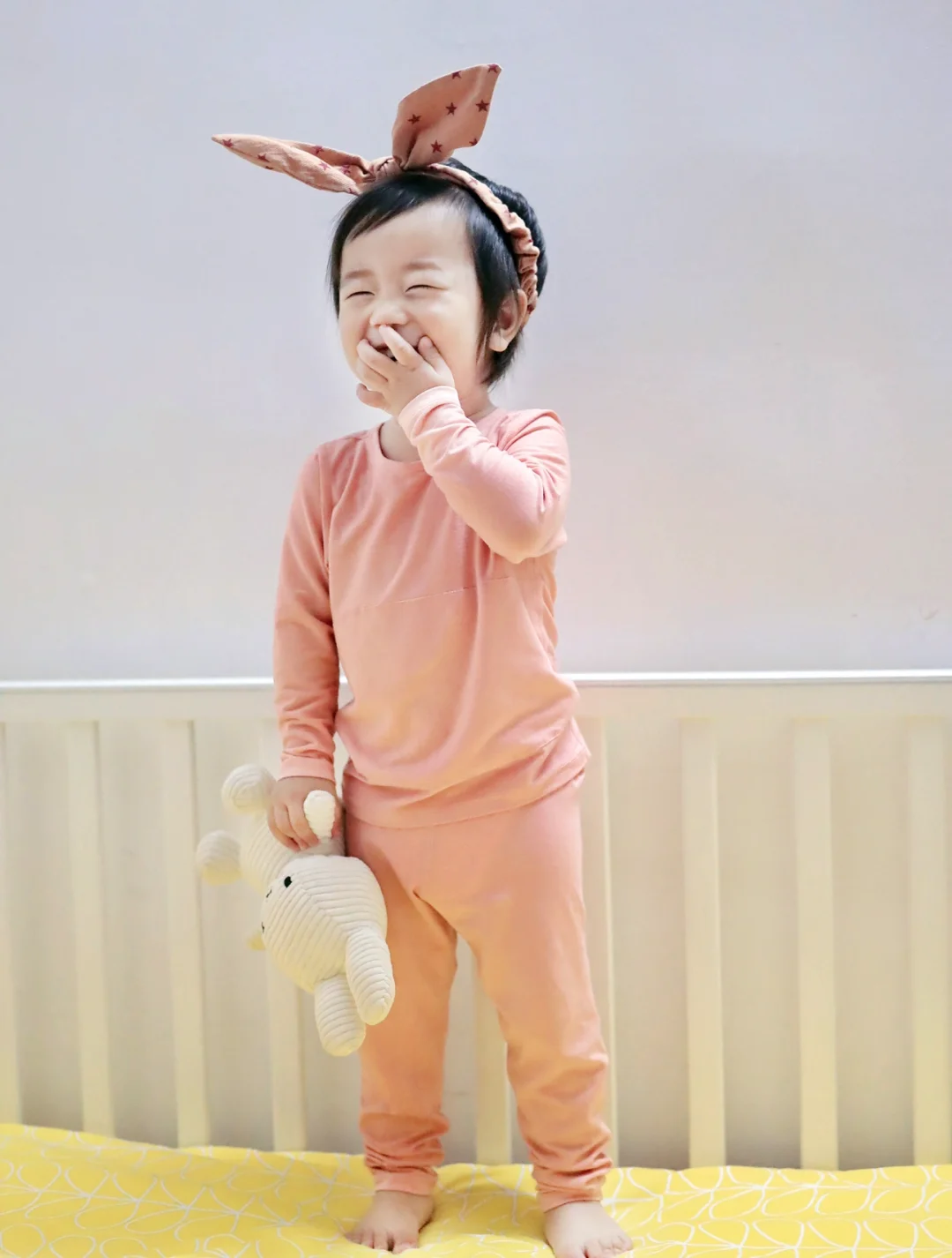 前不久给她入手的2套Q21儿童家居服刚好派上用场,我选的都是基础款,内搭外穿都是ok的,而且天丝材质比纯棉的更柔软舒适。👌Cyndi怕热容易出汗,穿这种天丝家居服好一些,不闷汗就不容易😷~