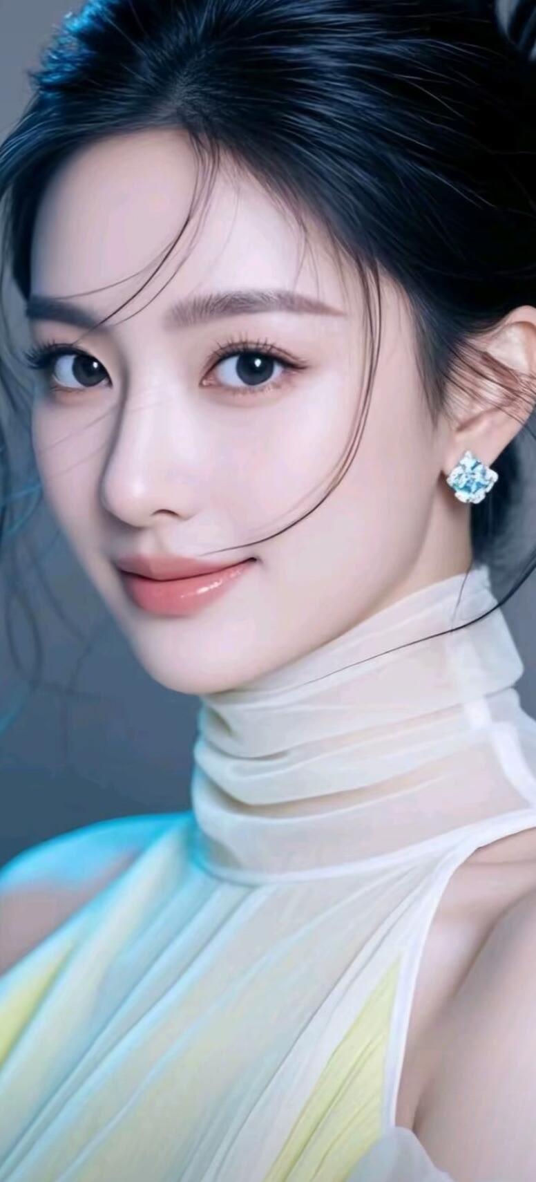 甜美笑容,黑发飘逸,元气满满的一天!😊✨