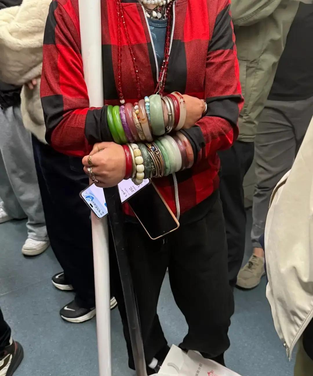 地铁里现在常看见有人手腕上套着十几二十个镯子。银的玉的金属的,叠成一大串。有人说这是个人自由,好看就行。但也有人觉得,这么戴不仅自己活动不方便,挤地铁还容易碰着别人。 这里头其实有讲究。医学研究说了,手腕长时间负重超过500克,得腕管综合征的风险能增加近四分之一。你算算,一个实心银镯子大概就一两重,玉的更沉。戴七八个,分量真不轻。 时尚圈也在玩叠戴,但人家聪明。用的都是轻巧材料,或者用设计让你看着堆得满,实际手腕没负担。公共安全方面,有些国外地铁已经提醒了,别戴太多太突出的饰品。 说白了,戴什么是自由。但自由不等于不管不顾。你戴着一斤多金属挤早高峰,自己手腕受罪,还容易剐蹭到别人。这事说到底是个度的把握。尊重审美多元化,但也得讲点科学,顾及点场合。地铁是公共空间,大家都舒服才好。
