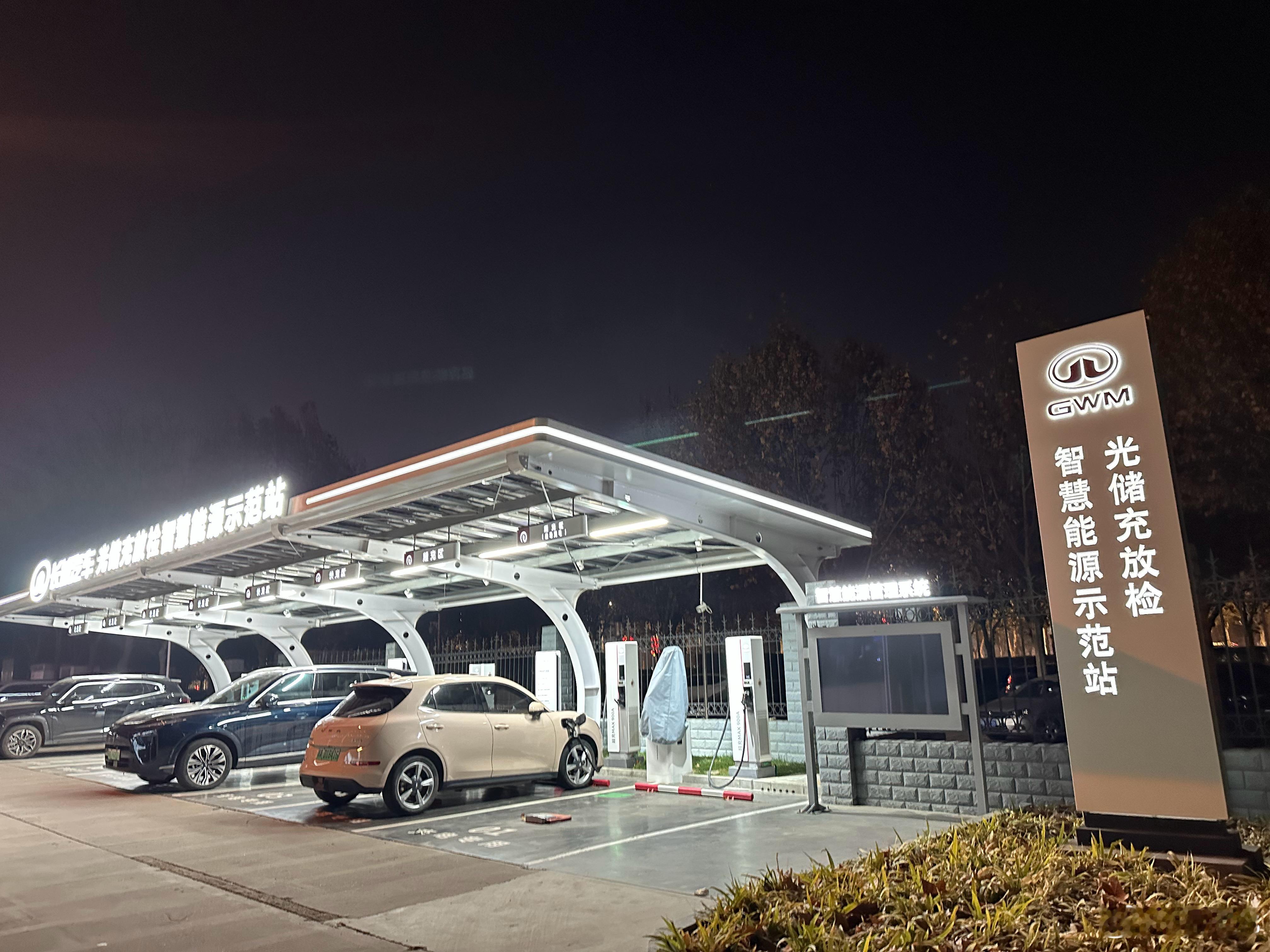长城汽车,光储充放检智慧能源示范站:720kW全液冷超充桩,最大电流900A搭配100KW、200度电的储能系统,峰谷价差约0.6元,能有效降低场站的电费成本,实现峰谷套利。该站光伏装机20KW,一年发电量超过2万度,可供10辆新能源汽车充电1年。并支持V2G车网互动,车主可将车辆电量反向输送至场站并获取收益。同时,可以采集电池数据到后台,对电池健康度进行评估。