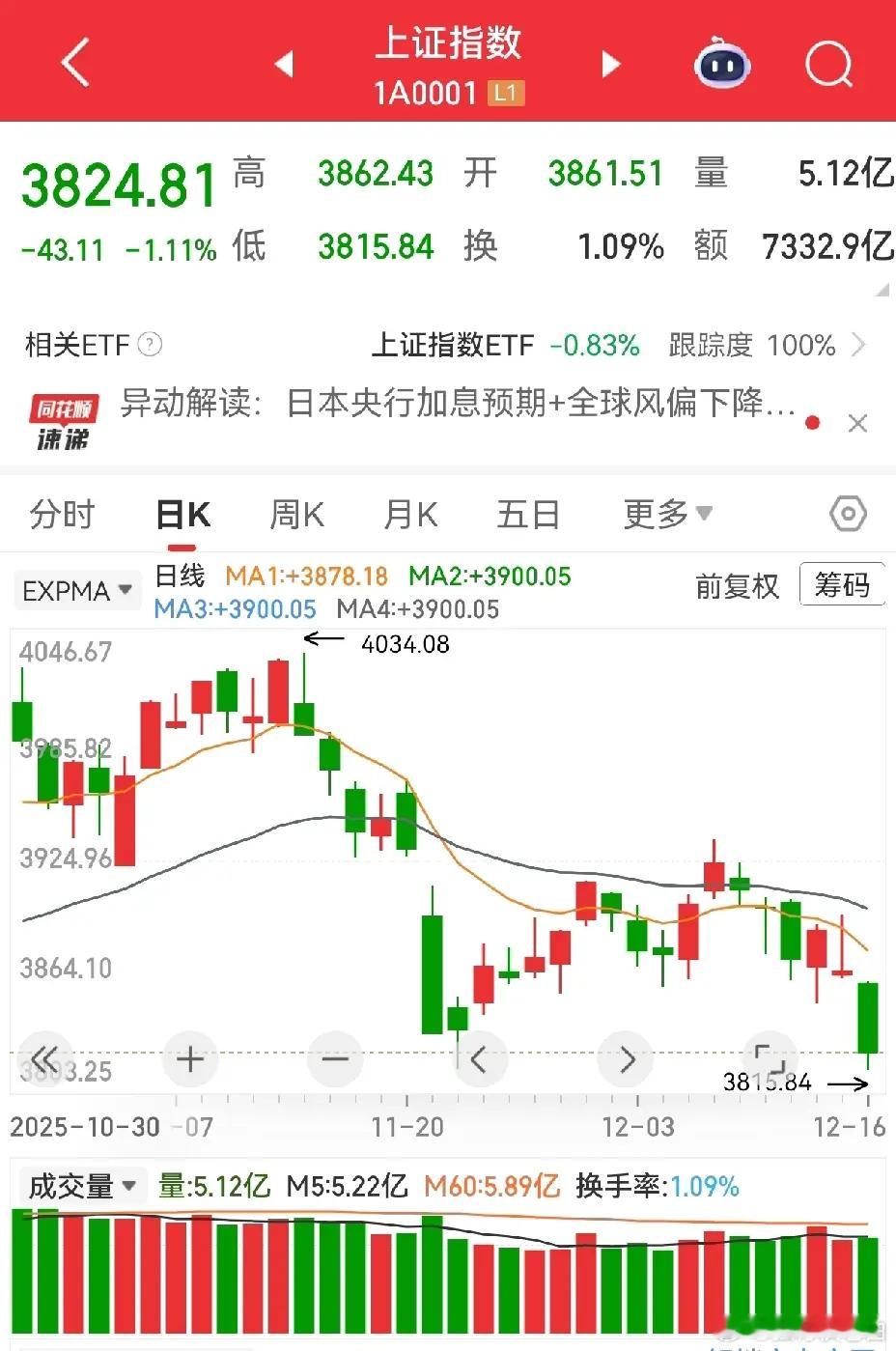 大盘指数在12月8日回补缺口后,又跌了六天,并且创出下跌路上新低,昨日的大跌有加速之态,大多数个股连续下跌,破位个股不计其数,破位后的走势多数是继续下滑,目前仅有的几个板块稍微好一些,航天,消费,但还是以抱团走位为主,也就是说集中表现在某些代表性的个股,比如消费类,就那么几个百货集团或连锁超市在涨,涉及消费类的品种太多了,大都表现平平,说明市场人心涣散。航天类目前比较杂乱,但个股总体走势大优于其他行业。有些个股虽然短期较强,但在此背景下,如果补跌,也不意外。目前行情谨慎观望,稳妥。特别提醒:贴图欣赏,并非推荐,据此操作,风险自担。✦✦✦本人仅此一号,无微信群,无公众号,不主动加人,主动加人者是骗子。请提高警惕,否则损失自负。✦✦✦