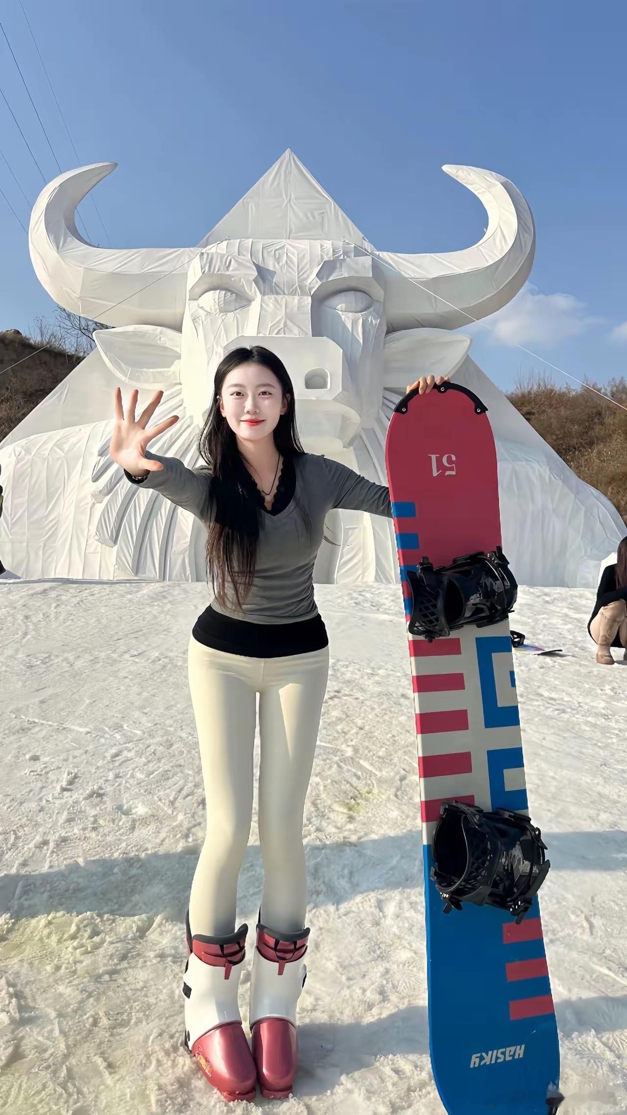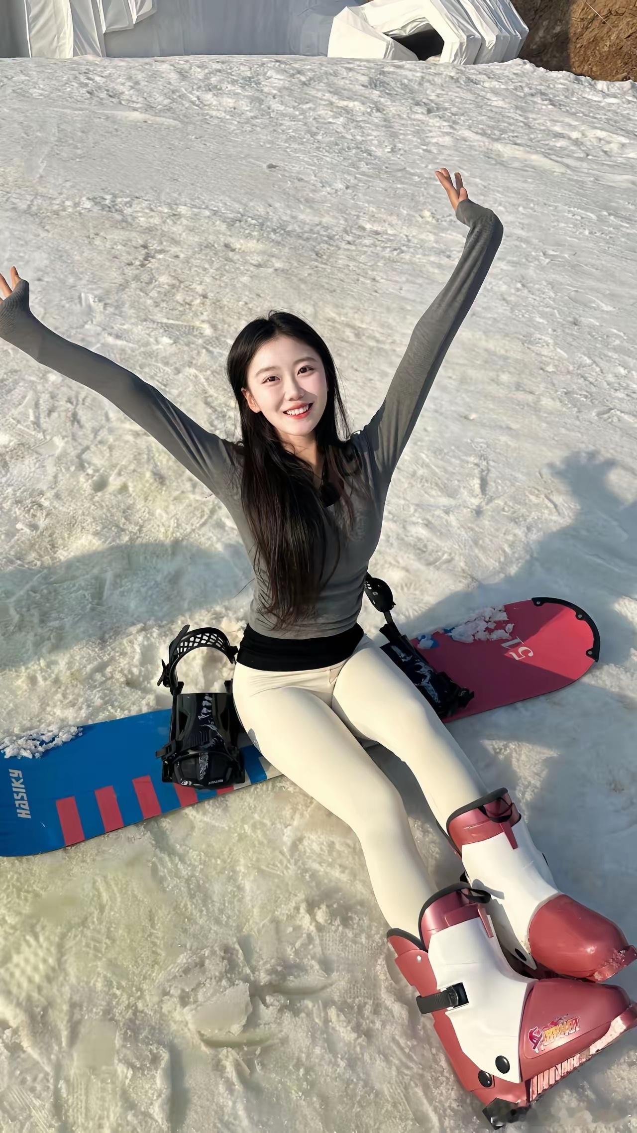 少妇超甜305 冬日滑雪少女,笑靥如花,雪地留影,快乐无限