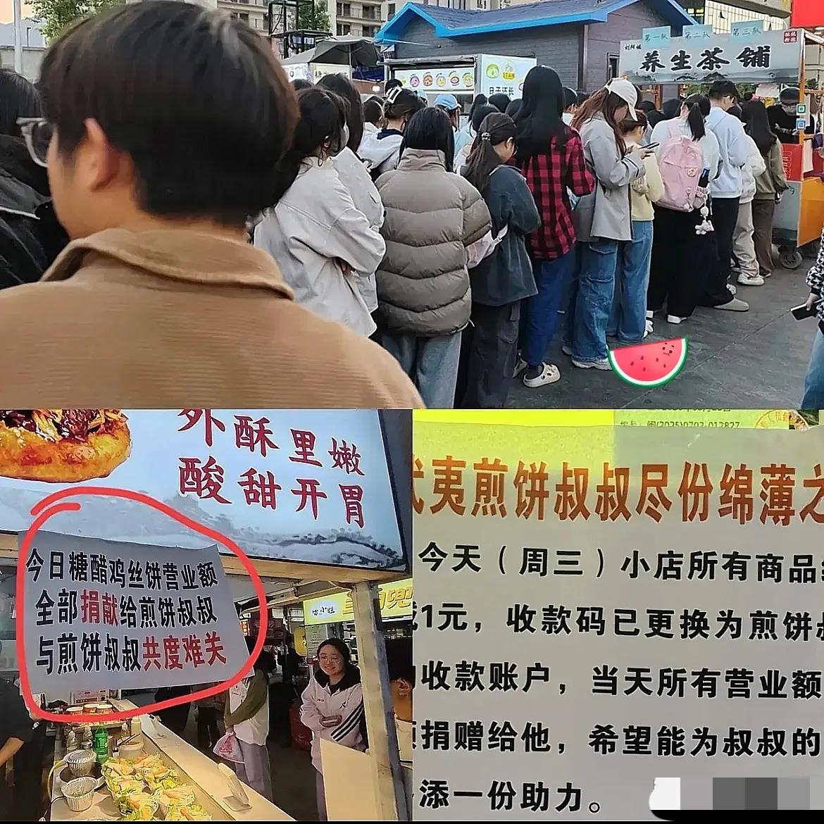央妈都发声了, 这下不光福建,就连全国都知道了!同行是冤家,这话在福建师大旁边的小吃街失效了。整条街的二维码,一夜之间全换成了同一个人的。不是黑客攻击,也不是系统bug。​是为了救那个卖煎饼的老张。 老张本名张建武,是福建师大旁小吃街里的煎饼摊主,大伙儿都喊他煎饼叔叔。日子本来过得平平淡淡,守着个小摊子,靠着一张张煎饼赚点辛苦钱,可一场意外让他的生活瞬间塌了——家人突遭重病,巨额的医疗费用像座大山,压得他喘不过气。消息在小吃街传开后,谁都没料到,平日里各做各生意的摊主们,竟心齐得像一家人。 糖水铺老板把招牌改了,写着今日营业额全捐给煎饼叔叔,还把糖水打八折吸引顾客;卖糖醋鸡丝饼的摊主也立了块牌子,说当天赚的钱一分不留全给老张;还有养生茶铺、烤串店,一家挨着一家,把自己的收款码全换成了老张的。小吃街的顾客们也格外暖心,知道了这事,特意绕路来这条街消费,队伍排了老长,有人买杯糖水,有人要份煎饼,嘴上说着“帮衬下老张”,手里递钱的动作格外干脆。 常听人说商场如战场,做生意的人眼里只有利益,同行之间更是恨不得互相压一头。可福建师大这条小吃街,却把这种刻板印象砸得稀碎。这些摊主们,自己做的都是小本生意,赚的都是起早贪黑的血汗钱,却愿意把一天的营收都拿出来帮同行,这份情分,比金子还珍贵。他们不是不心疼自己的收入,只是觉得,看着身边的人落难,伸把手比什么都重要。 更让人感动的是,这份善意不是作秀,没有半点刻意的宣传,就是摊主们你一言我一语商量出来的结果。有人说“老张平时人不错,谁家有事他都肯搭把手”,有人说“都是讨生活的,能帮就帮”。简单的话,却藏着最朴素的善良。央妈发声后,全国网友都被这份温暖打动,有人说这是小人物的大情怀,有人说这才是人间烟火最动人的样子。 其实在生活里,这样的善意从来都不少见。只是有时候,我们被“同行是冤家”的说法困住,忘了人与人之间,除了竞争,还有守望相助。福建师大旁的小吃街,用一个个收款码,拼出了最暖的人间图景,也让我们看到,平凡人的善意,从来都有撼动人心的力量。 各位读者你们怎么看?欢迎在评论区讨论。