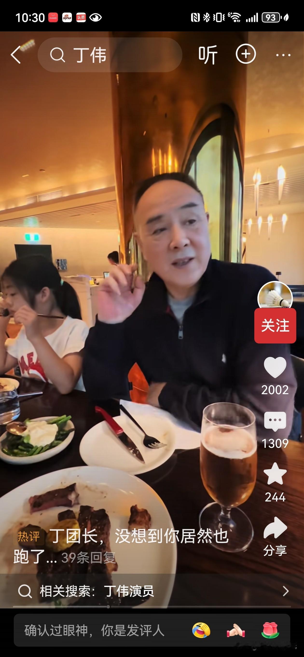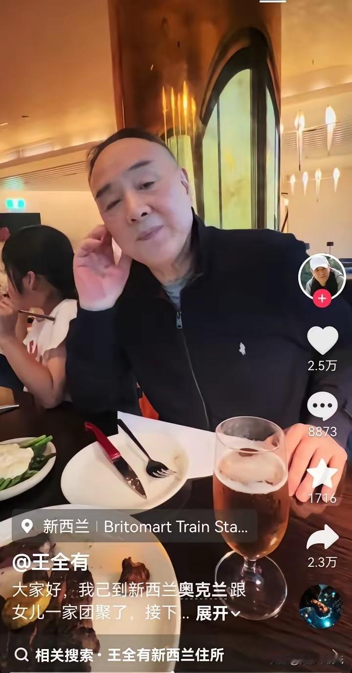 扒拉着午饭时,电视里又在重播《亮剑》。丁伟正拍着桌子说:“一个团打他廖耀湘!”我忍不住笑,这幕看了十几年,还是下饭。 手机一划,刷到了“丁伟”本人——演员王全有,在新西兰的餐厅里笑得眼眯成缝,女儿坐在旁边。弹幕飘过一片:“咋不叫上李云龙?” 我愣了两秒,随即笑了。是啊,我们总爱把角色和演员焊死在一起。可丁伟的霸气是演出来的,王全有的人生是自己的。镜头前,他是横刀立马的将领;镜头后,他也不过是个想和孩子团聚的老父亲。 就像我们,上班时是螺丝钉,回家就是爸妈的儿女、孩子的靠山。谁不盼着晚年儿孙绕膝,享享清福?他演活了抗战英雄,够我们记一辈子了。至于生活,那是他自己的战场,该由他自己选择去哪儿“驻扎”。 戏里戏外,本就不是同一个剧本。老戏骨找到了他的团圆结局,挺好。咱们呀,继续看他的丁伟下饭就行。 王全有 亮剑