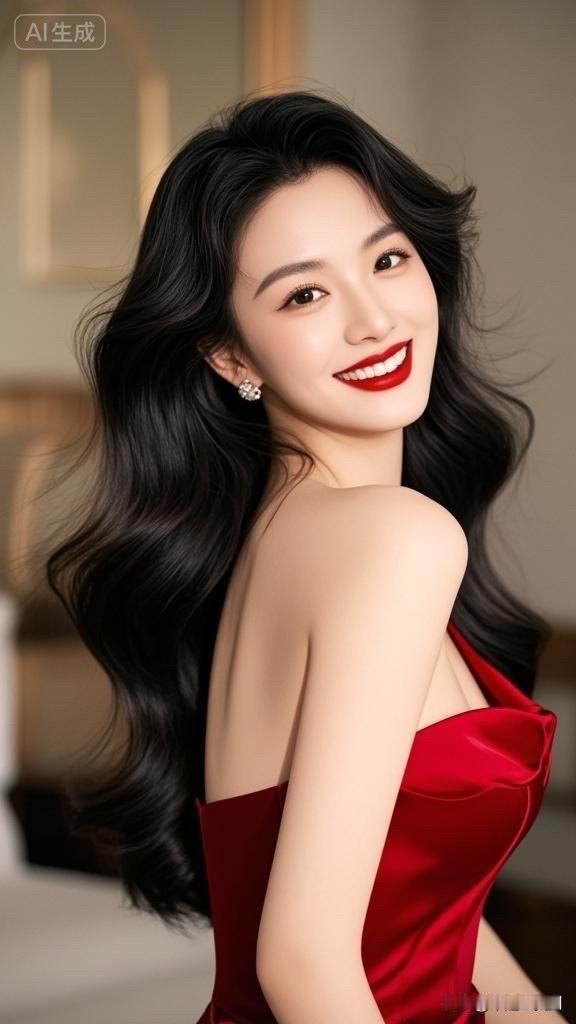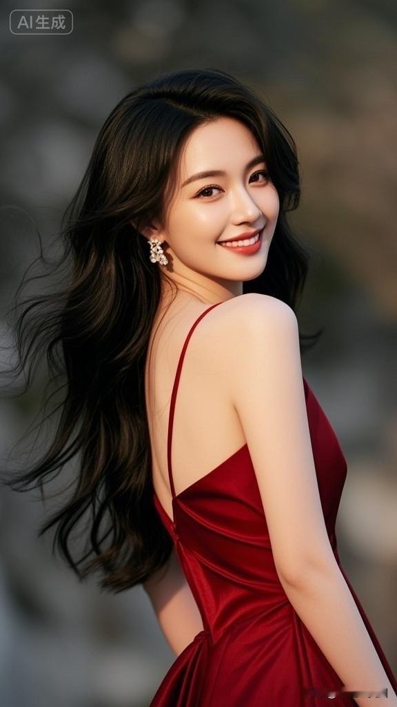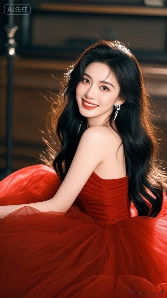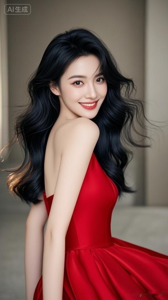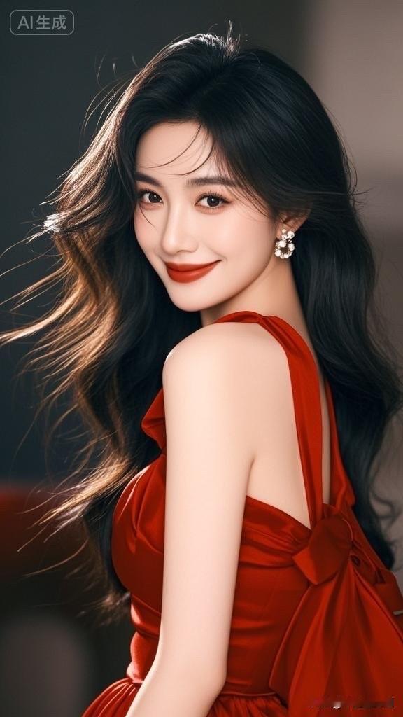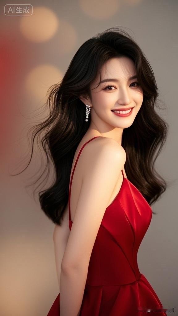 优雅红裙,甜美笑容,女神气质满满!💃🌹