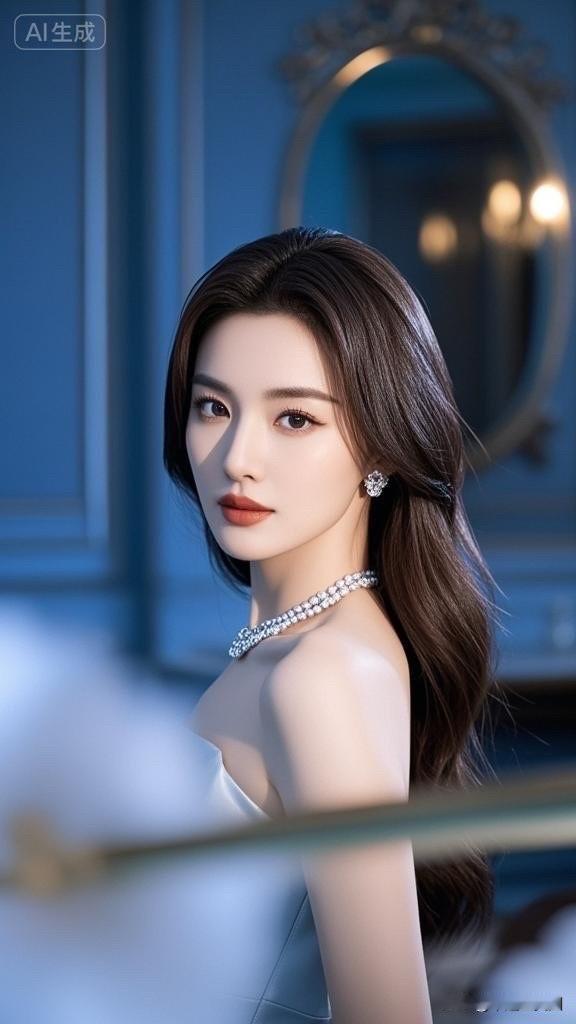 梦幻蓝光下,闪耀的晚礼服与优雅的气质完美融合。