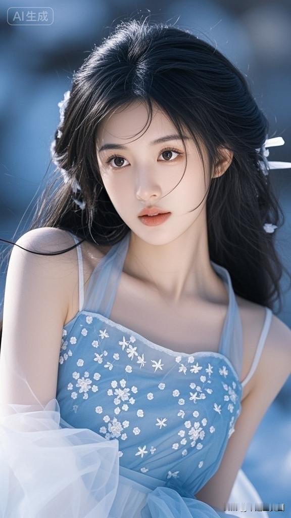 梦幻蓝光下,闪耀的晚礼服与优雅的气质完美融合。