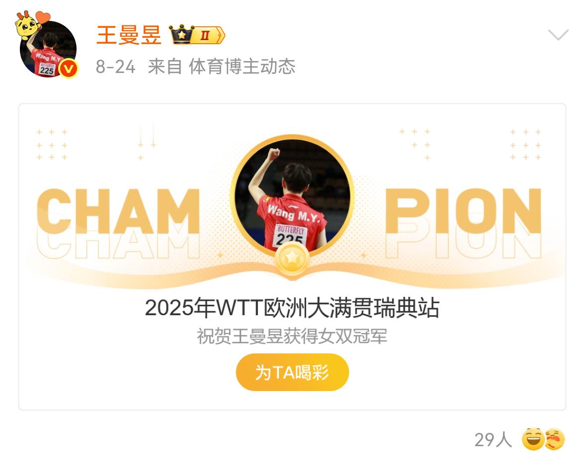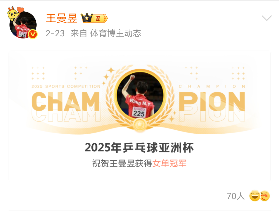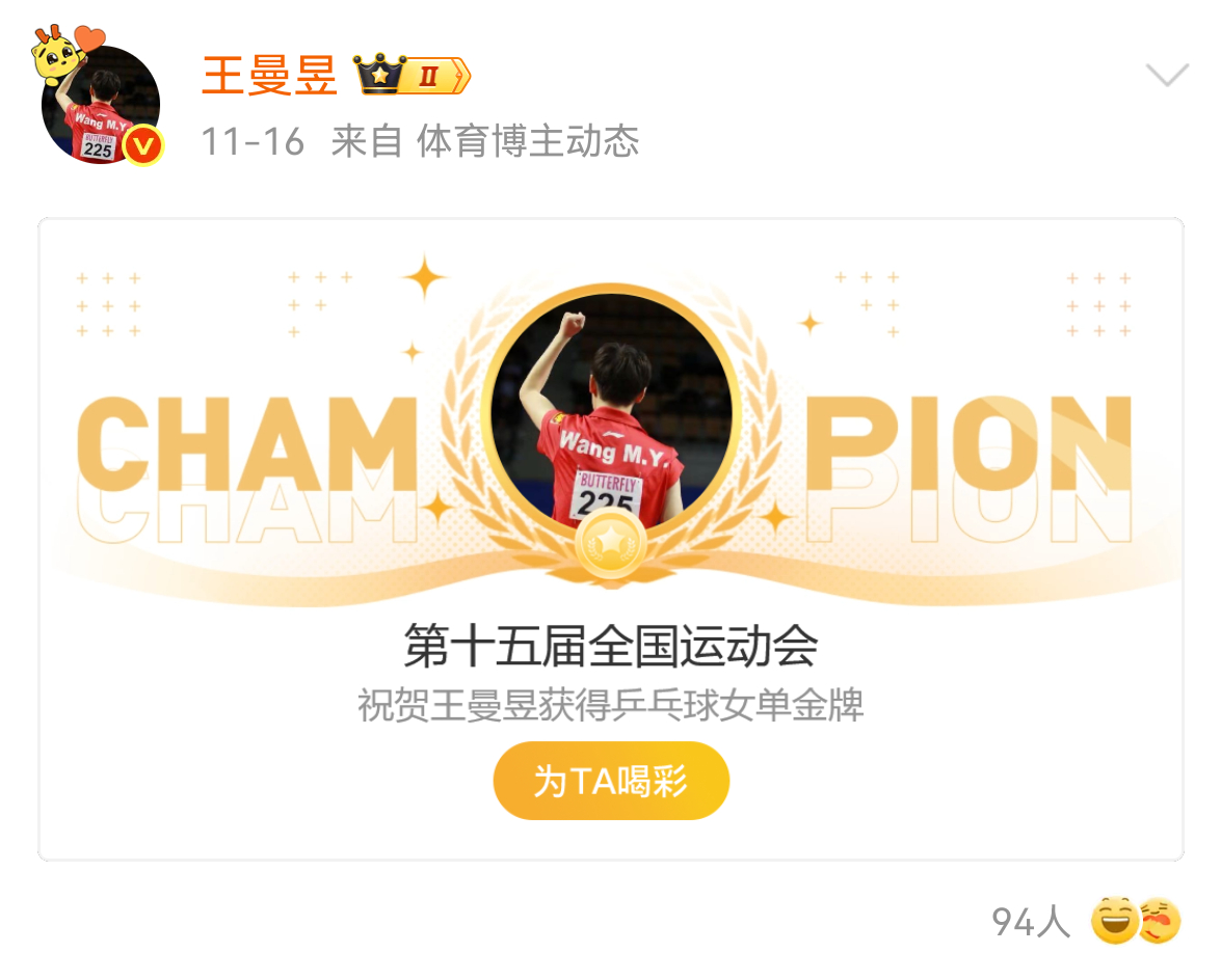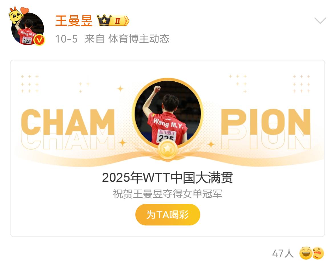 王曼昱本赛季国际赛事9冠加上四年一届的全运会,王曼昱本赛季共夺得10个冠军🥇🥇🥇🥇🥇🥇🥇🥇🥇🥇恭喜王曼昱!2026再接再厉!