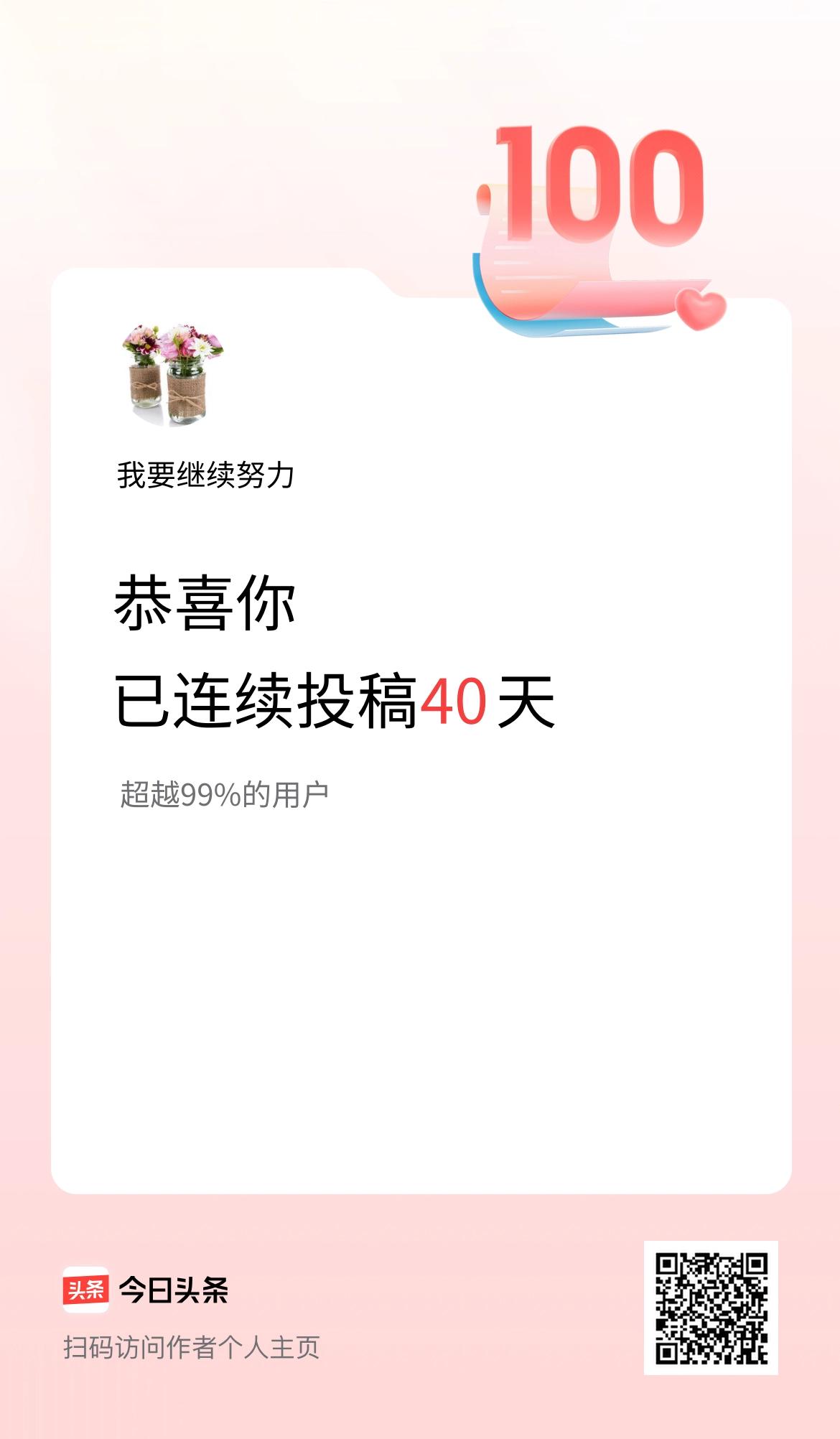 原来我也这么厉害,连续写作40天了。 我不再是那个过去三天打鱼两天晒网的我了。